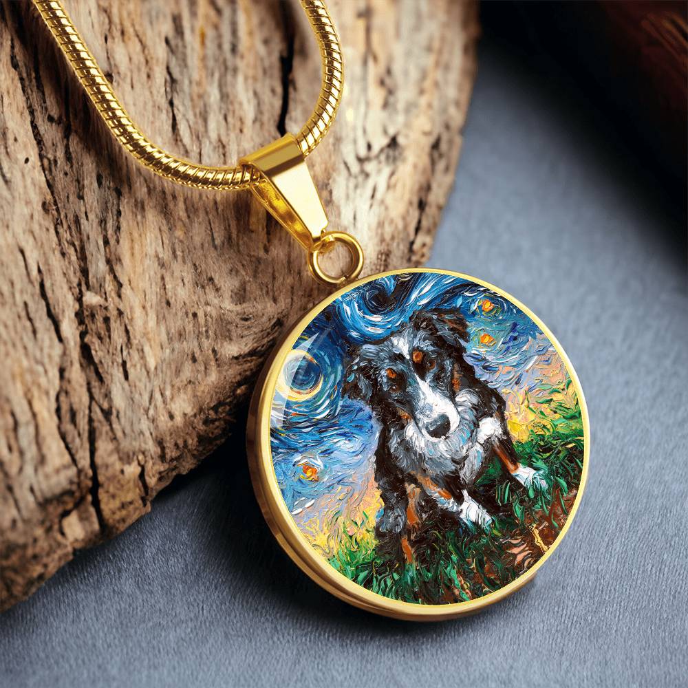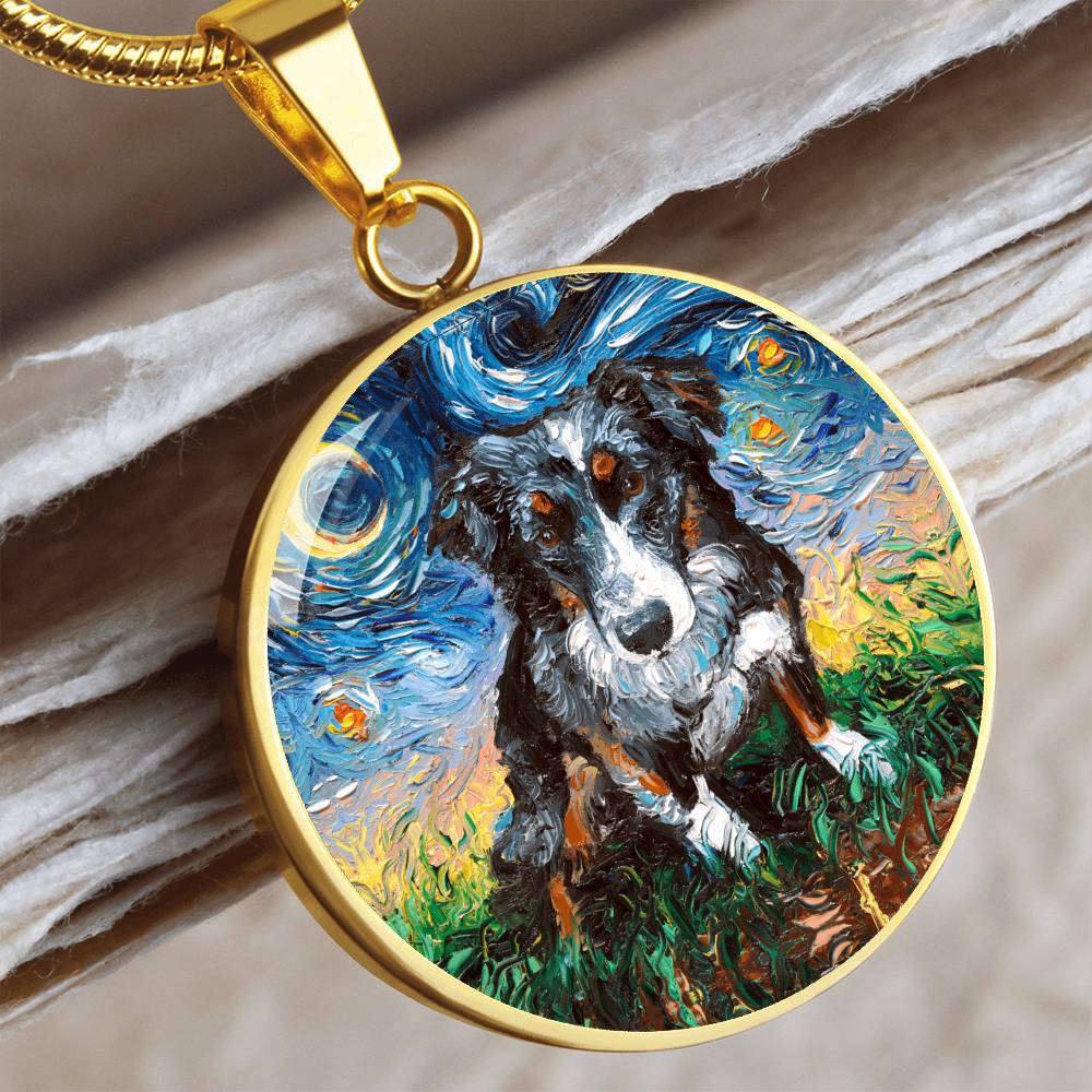 Australian Shepherd Starry Night Round Necklace
