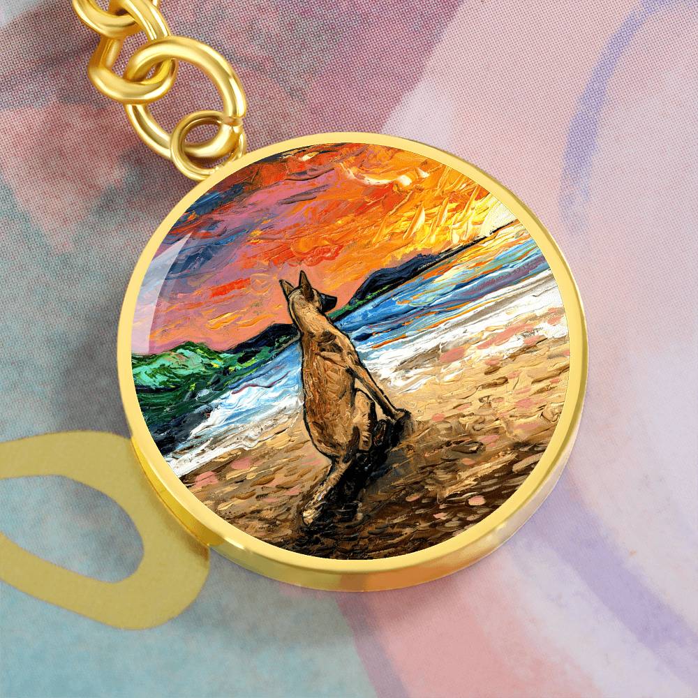Beach Days - Belgian Malinois Round Keychain
