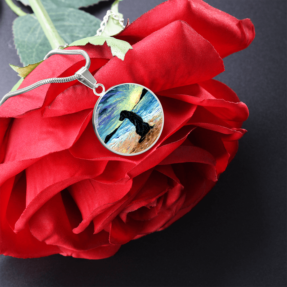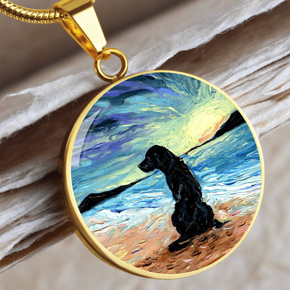 Beach Days - Black Labrador Round Necklace