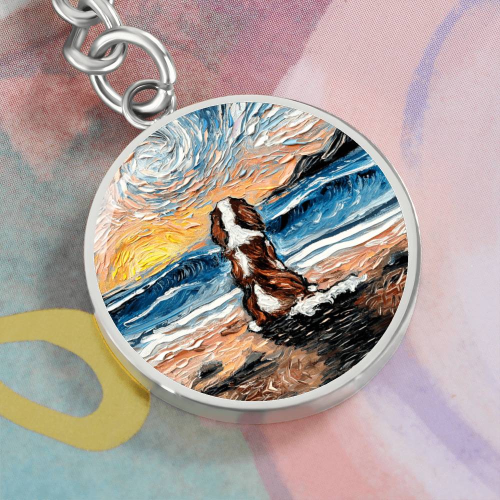 Beach Days - Blenheim Spaniel Round Keychain