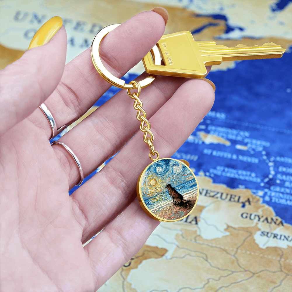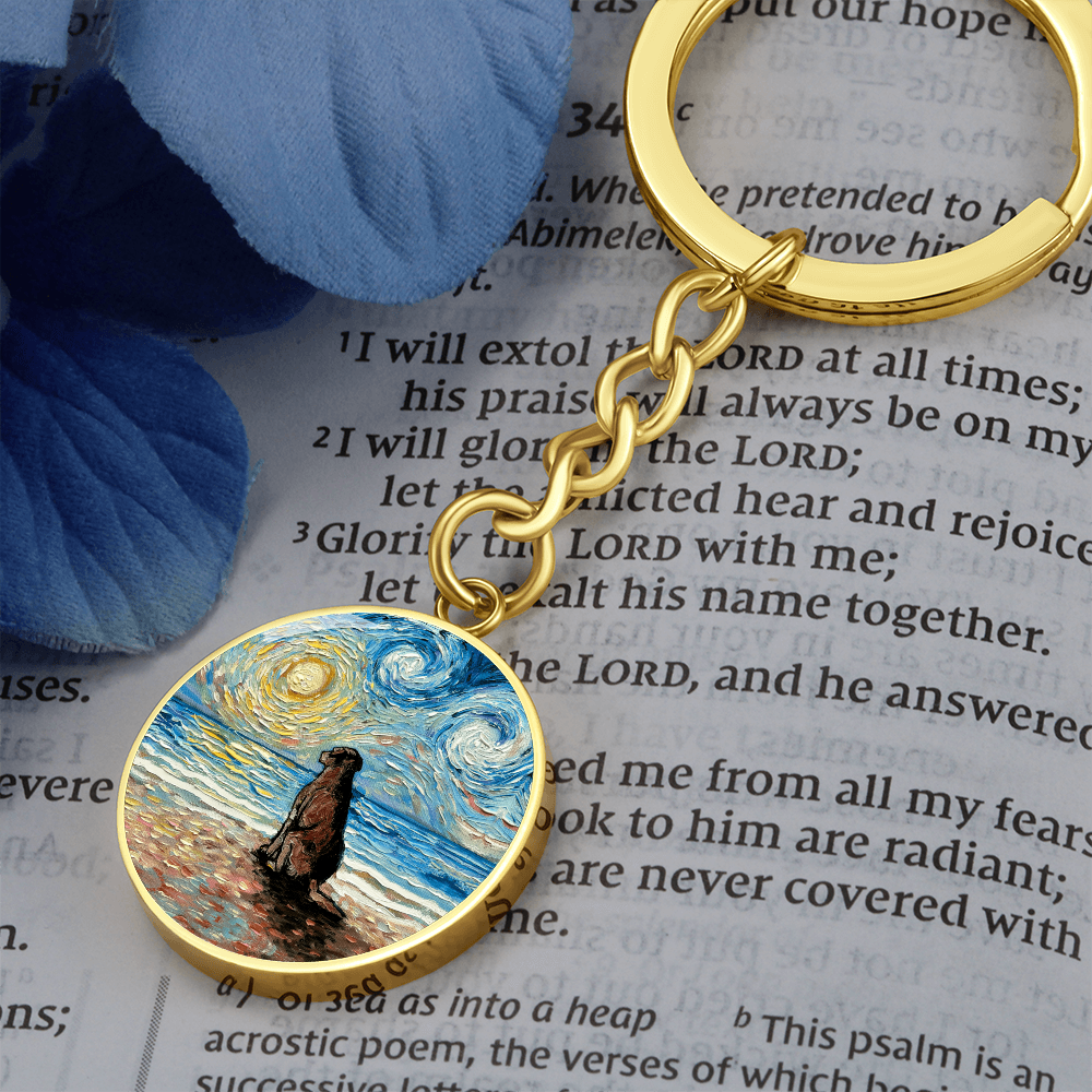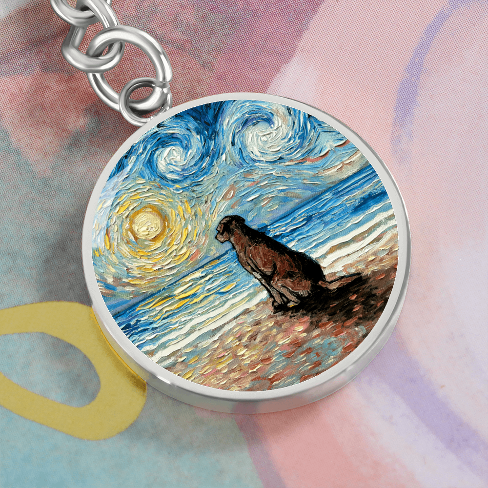 Beach Days - Chocolate Labrador Starry Night Round Keychain