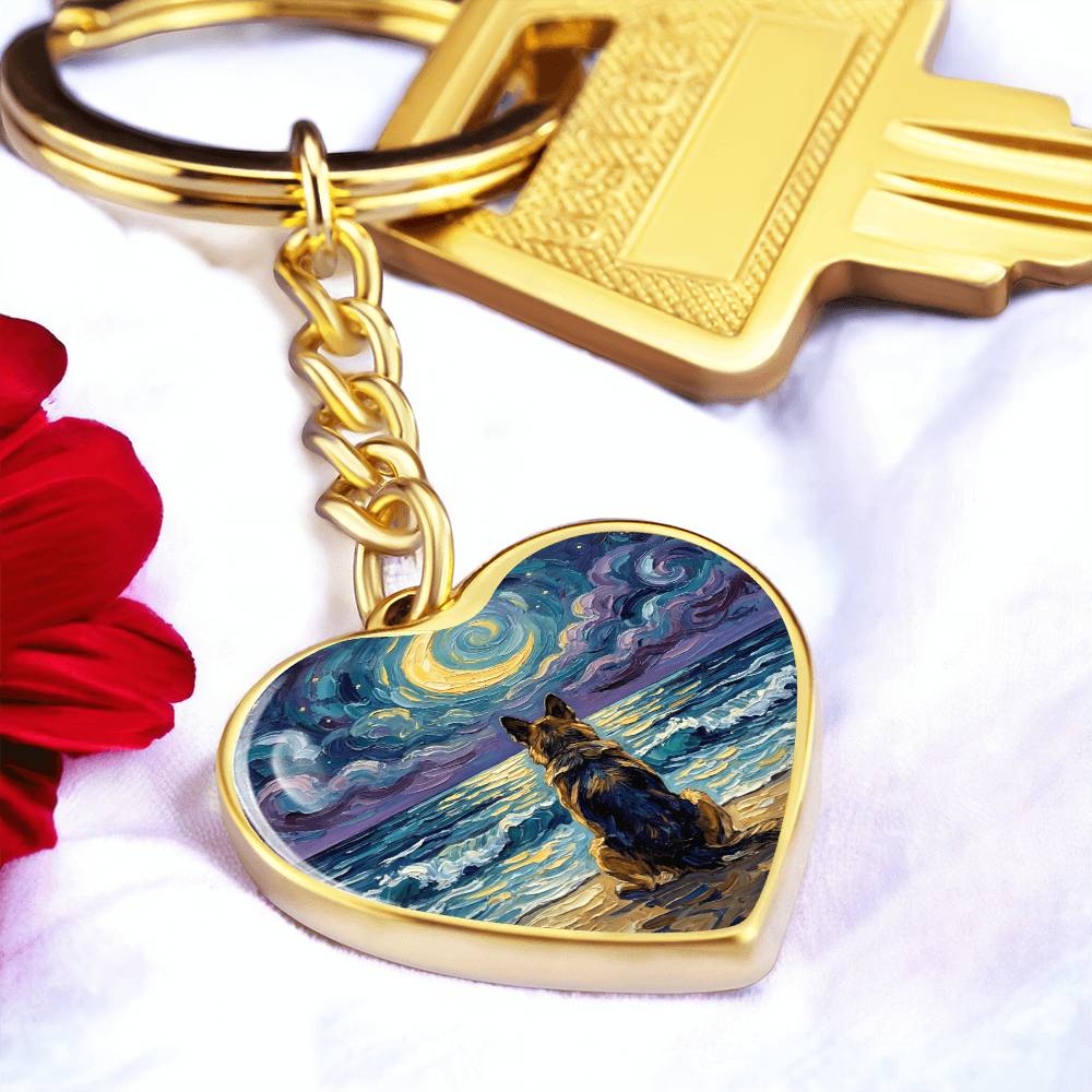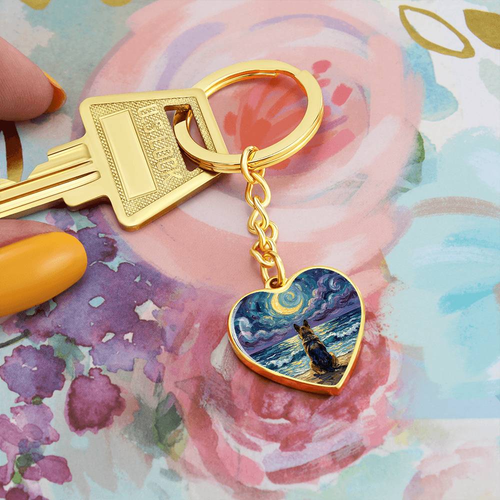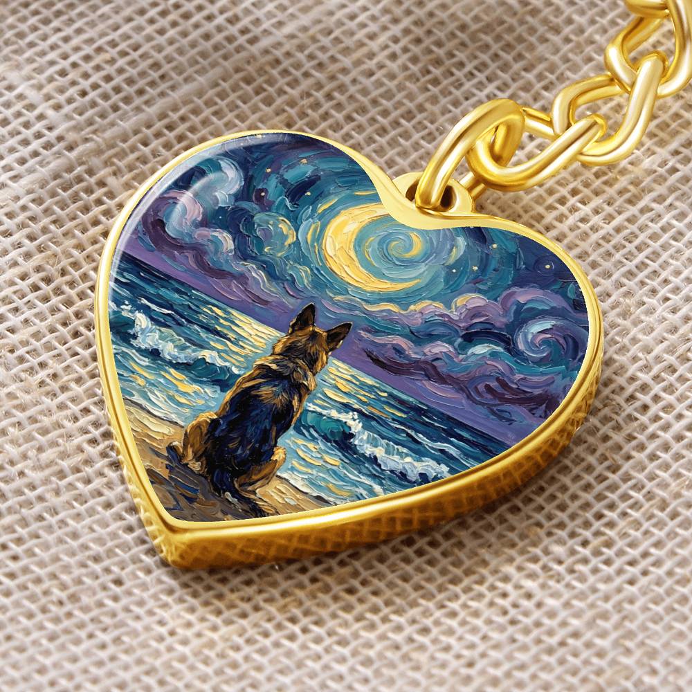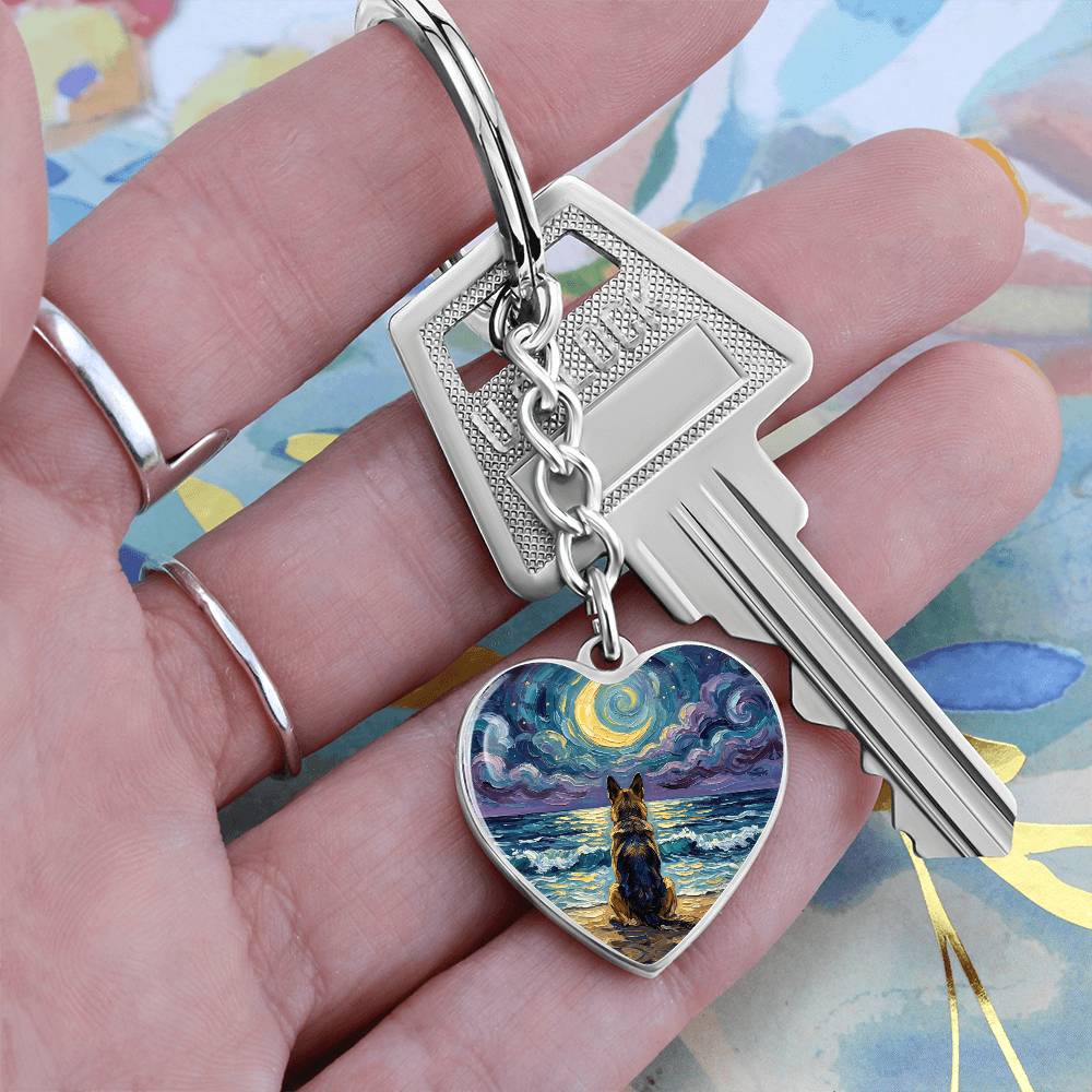 Beach Night - German Shepherd Heart Keychain
