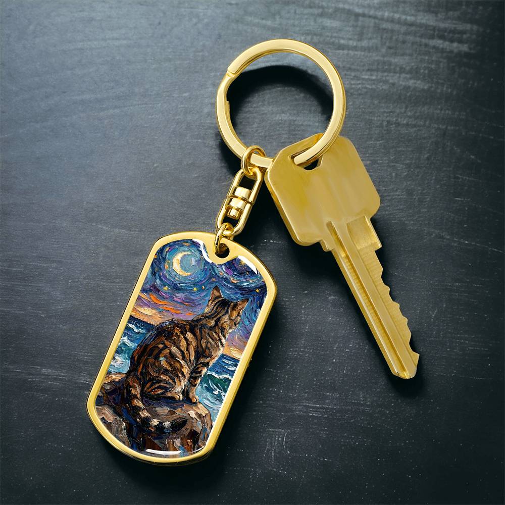 Beach Nights - Brown Tabby Cat Dog Tag Keychain