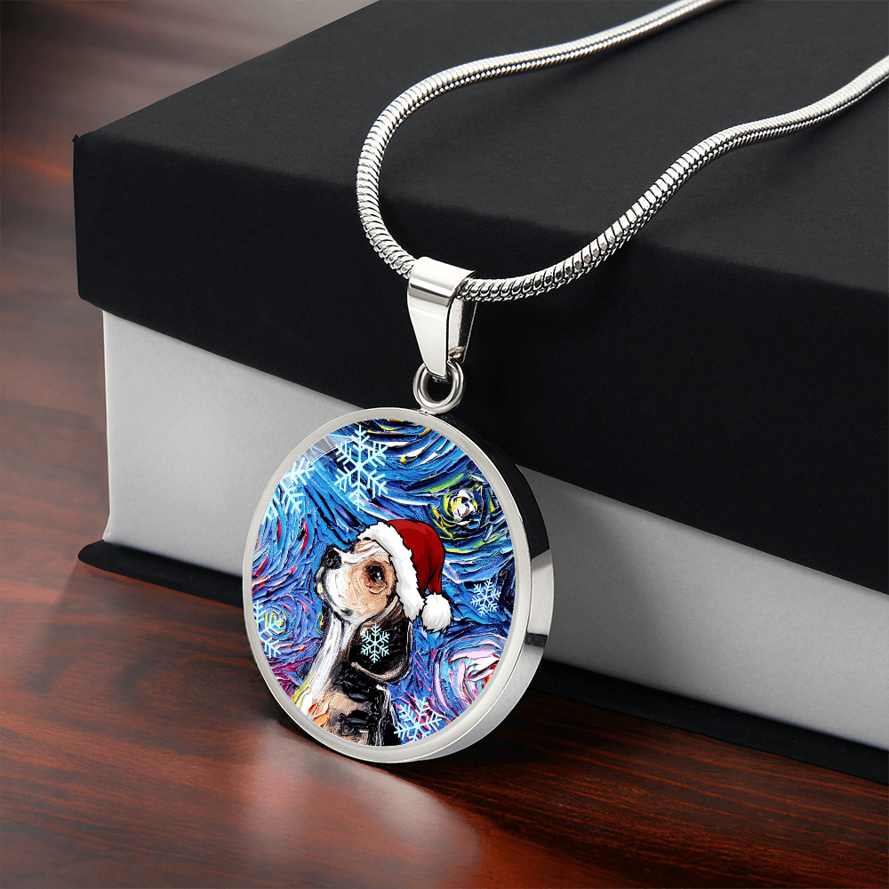 Beagle In Santa Hat Starry Night Round Necklace