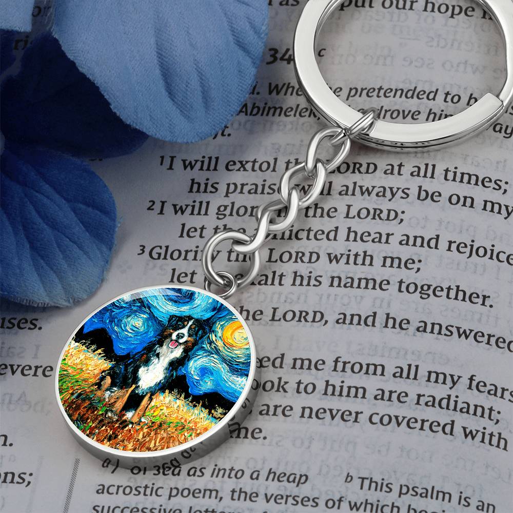 Bernese Mountain Dog Starry Night Round Keychain