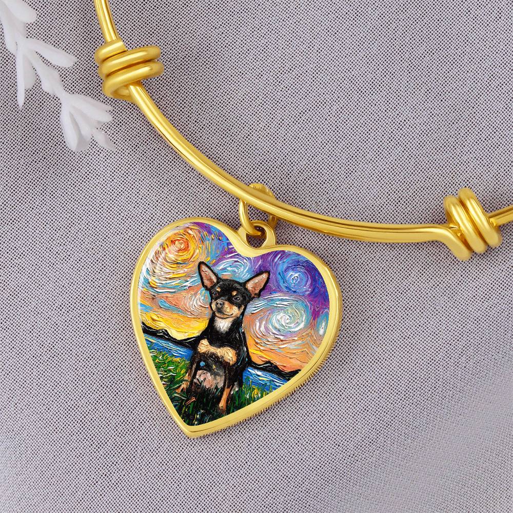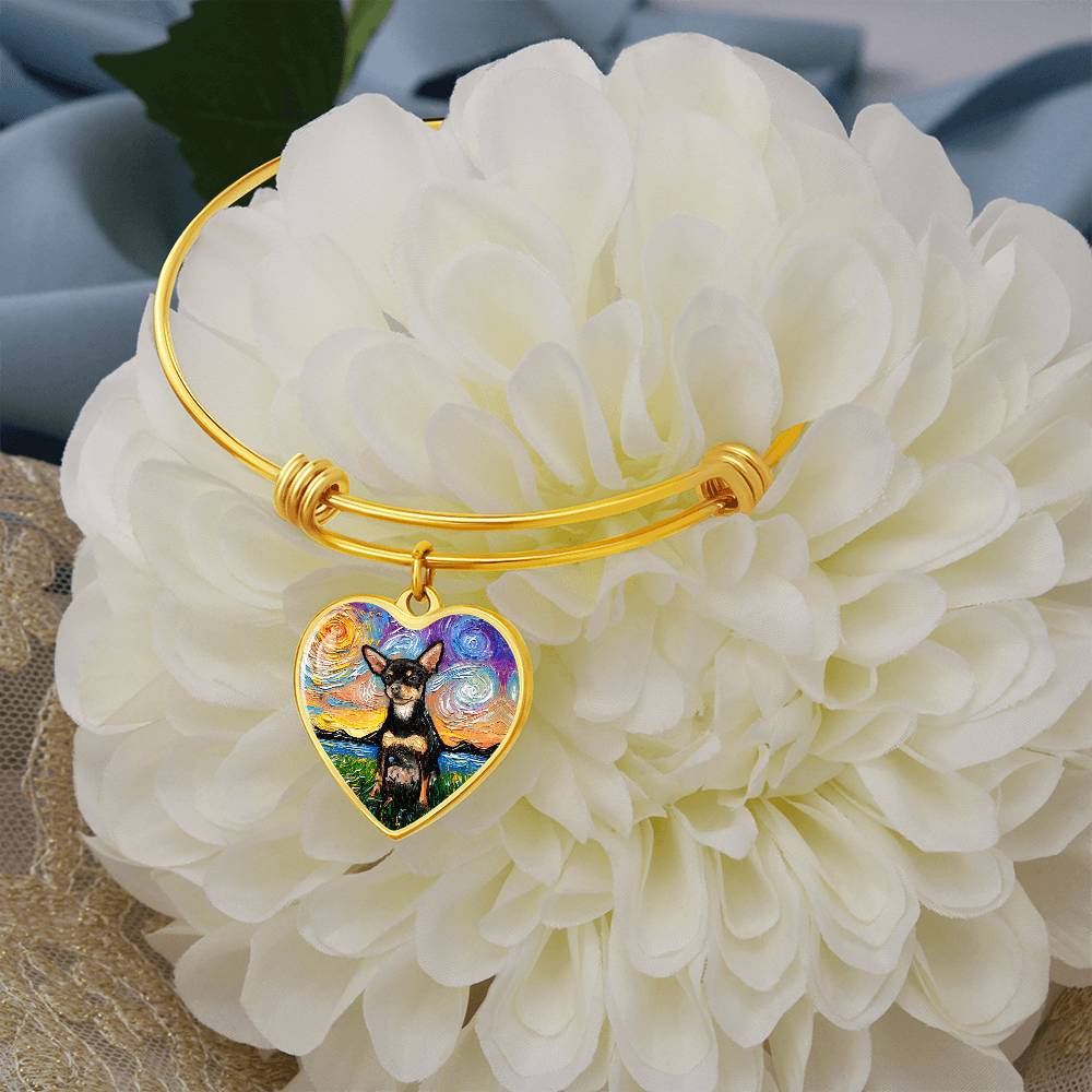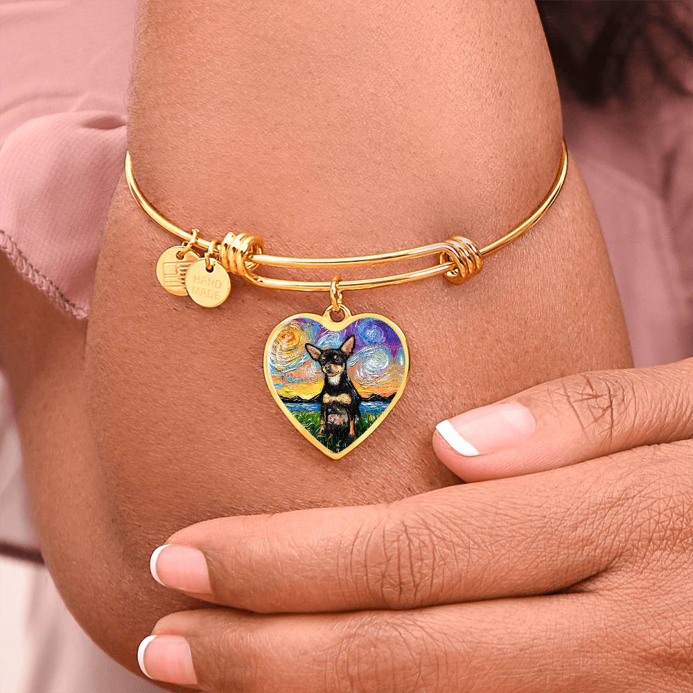 Black and Tan Chihuahua Starry Night Heart Bangle