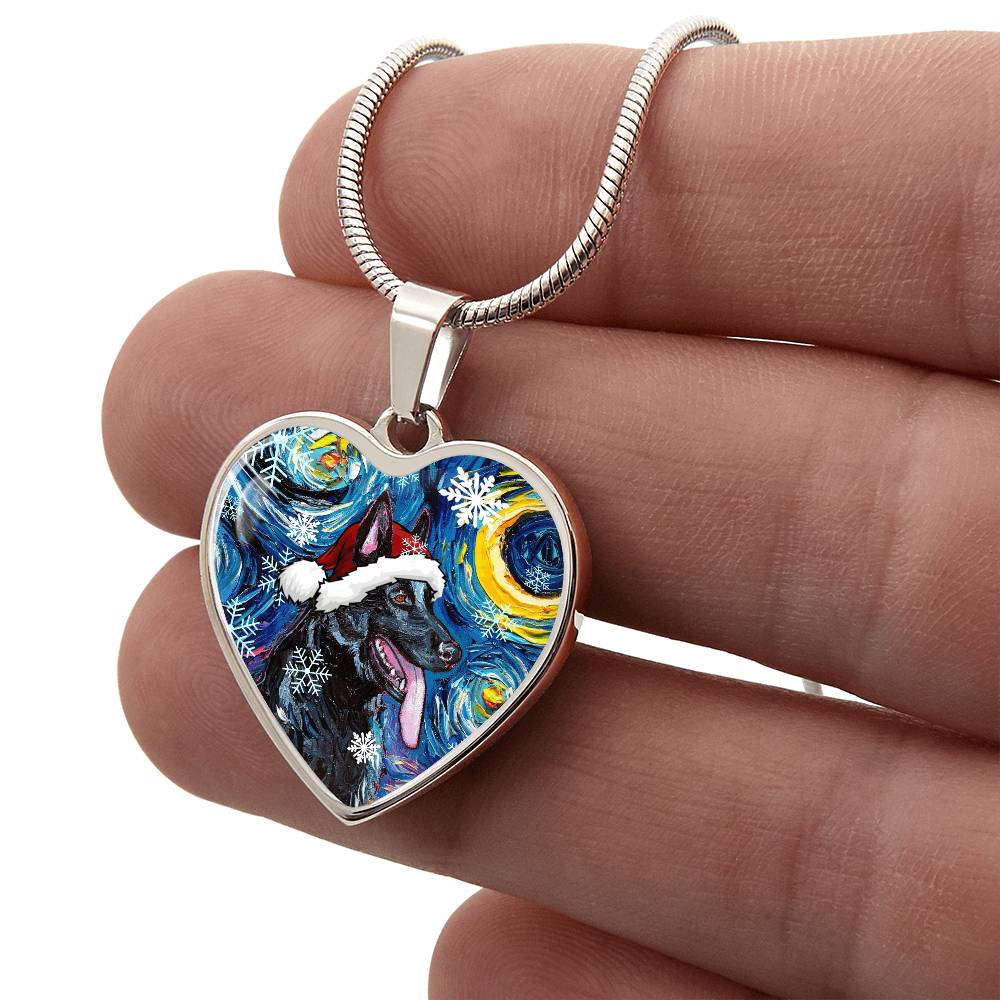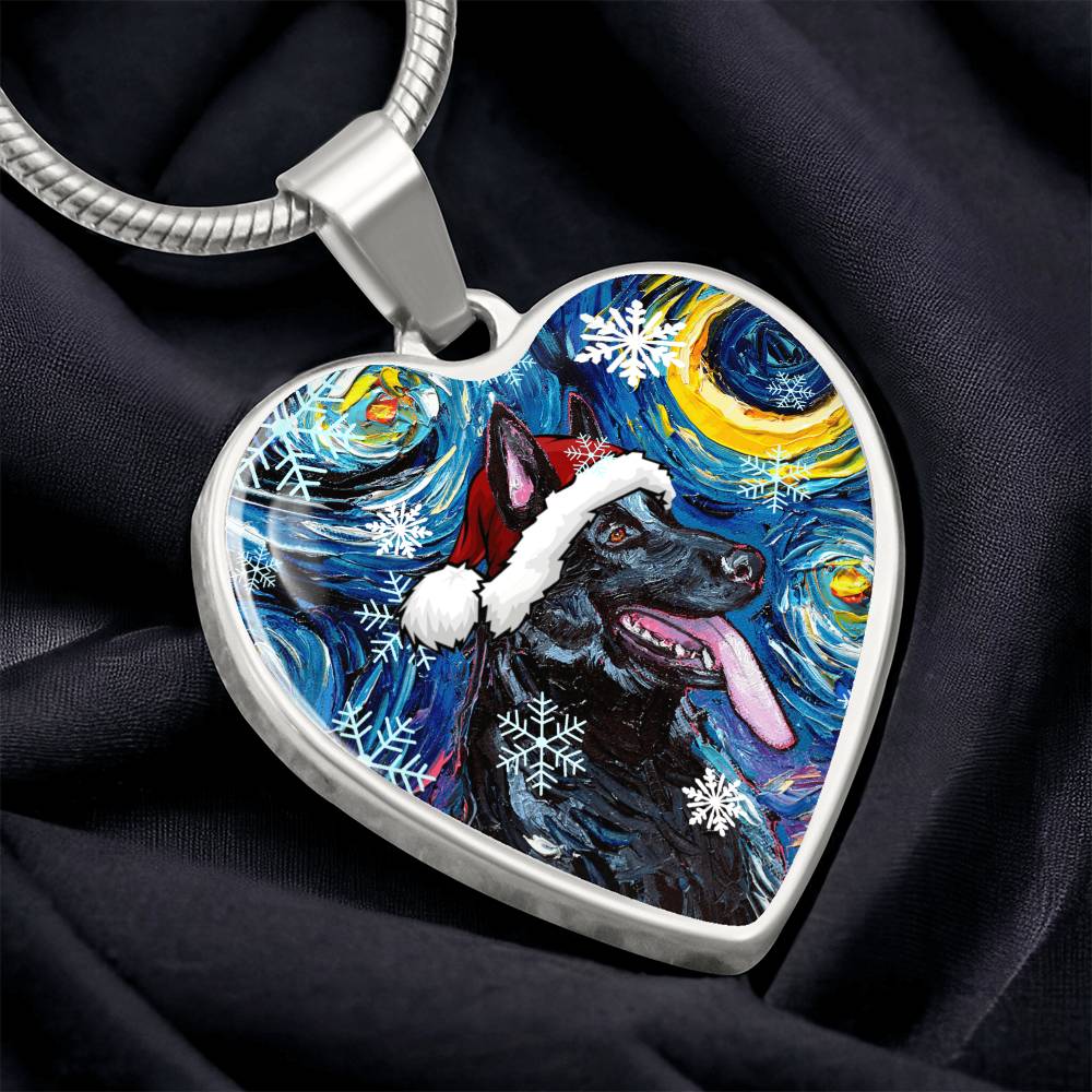 Black German Shepherd Christmas Heart Necklace