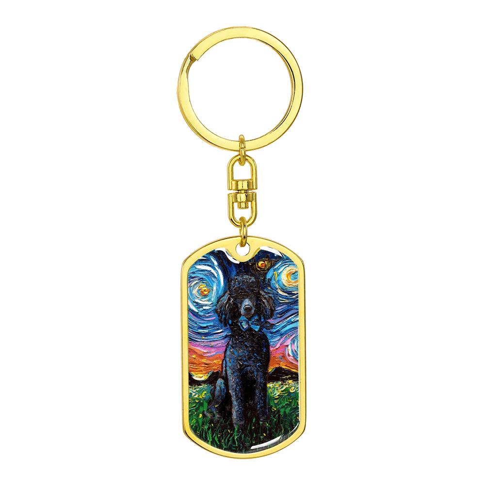 Black Poodle Starry Night Dog Tag Keychain