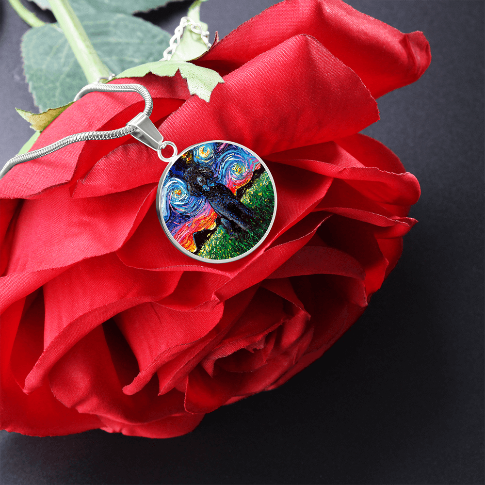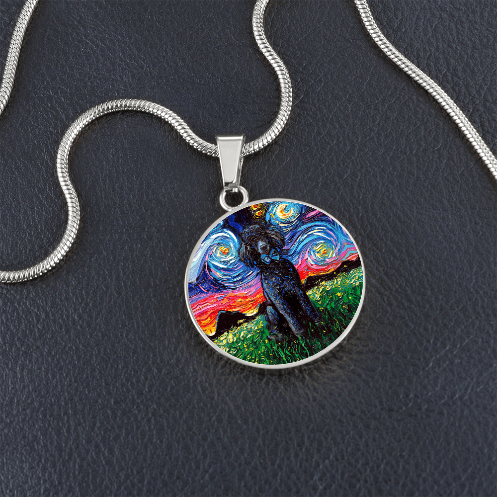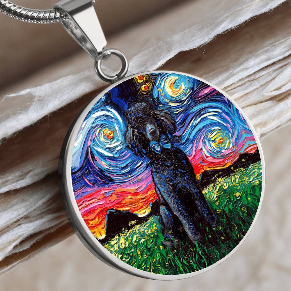 Black Poodle Starry Night Round Necklace