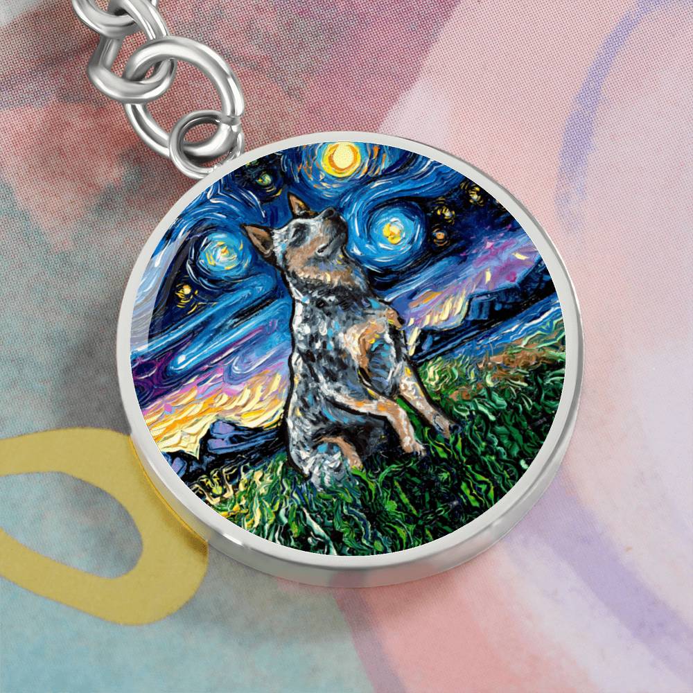 Blue Heeler Starry Night Round Keychain