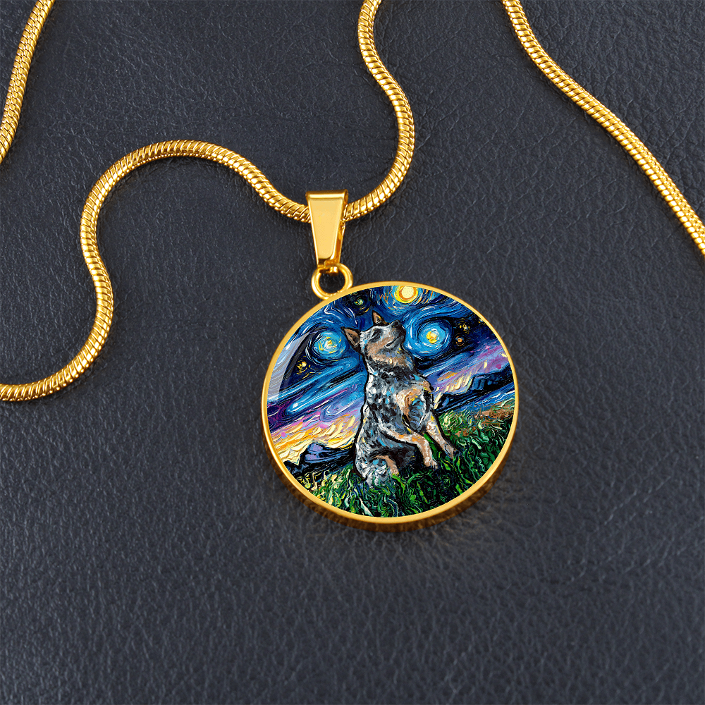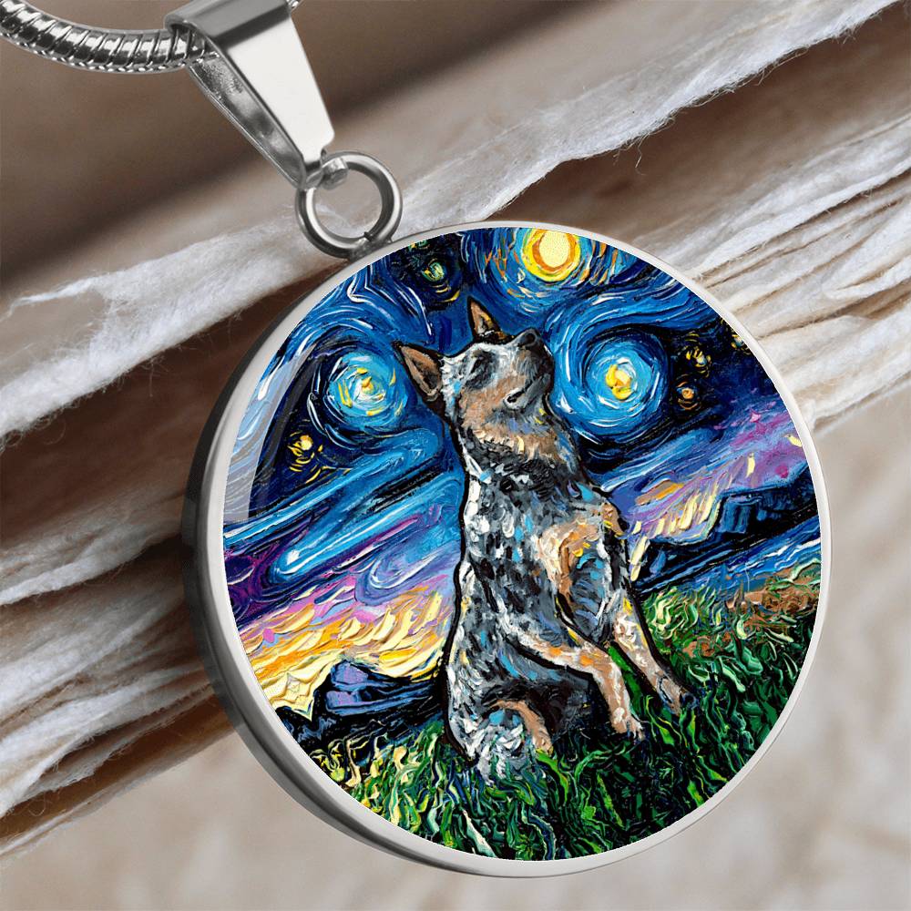 Blue Heeler Starry Night Round Necklace