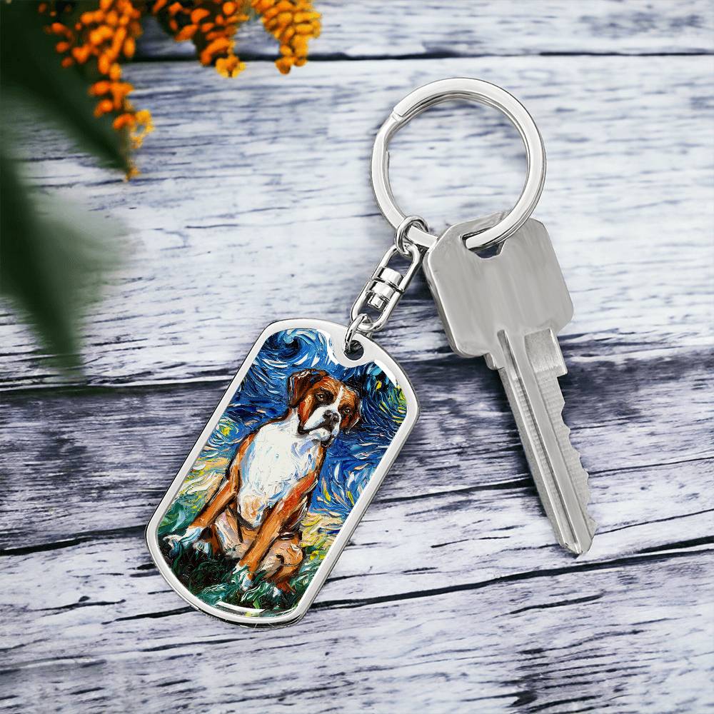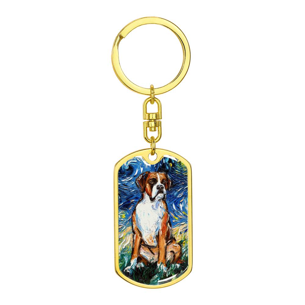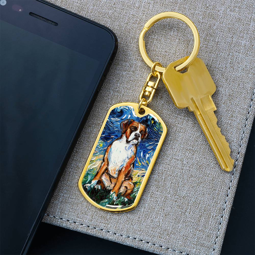 Boxer Starry Night Dog Tag Keychain