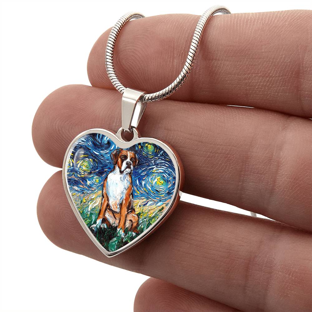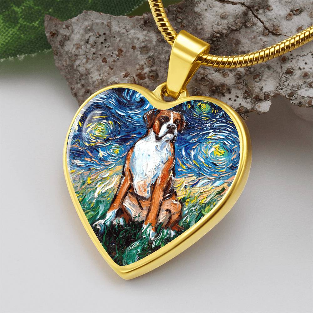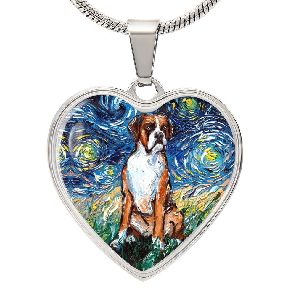 Boxer Starry Night Heart Necklace