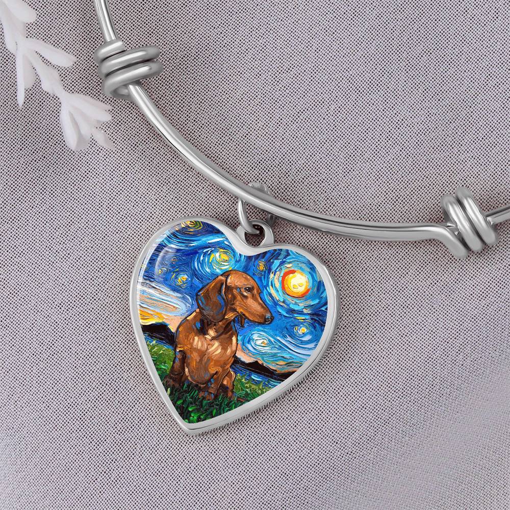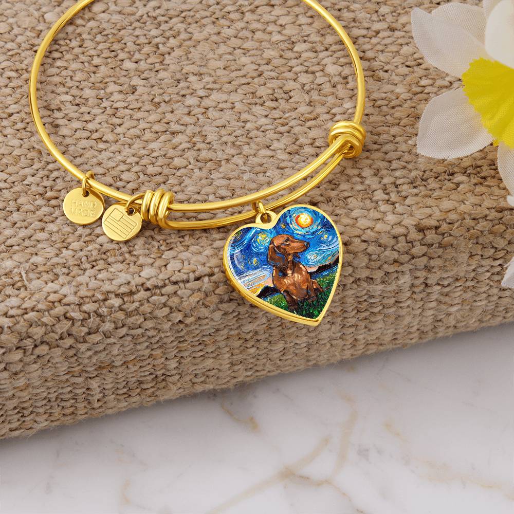 Brown Dachshund Starry Night Heart Bangle Bracelet