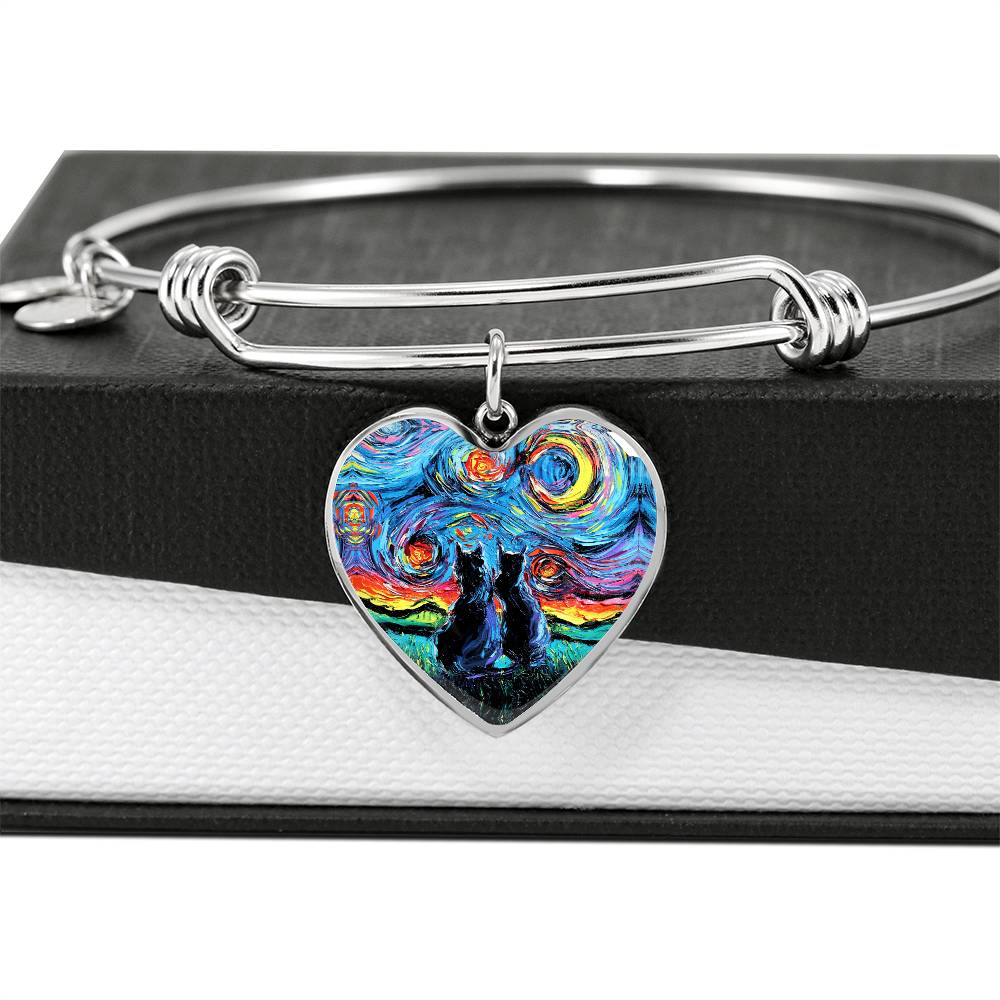 van Gogh's Cats Starry Night Heart Bangle Bracelet
