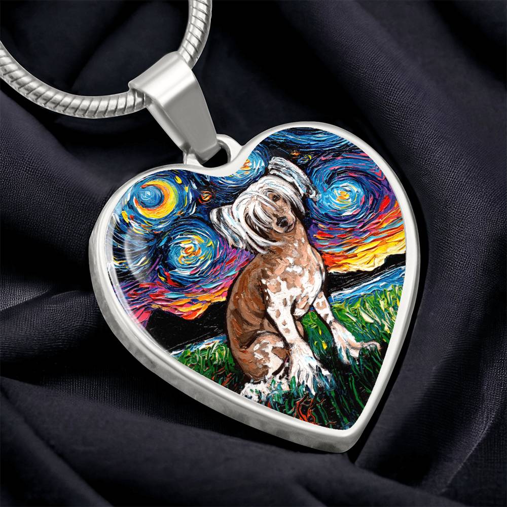 Chinese Crested Starry Night Heart Necklace