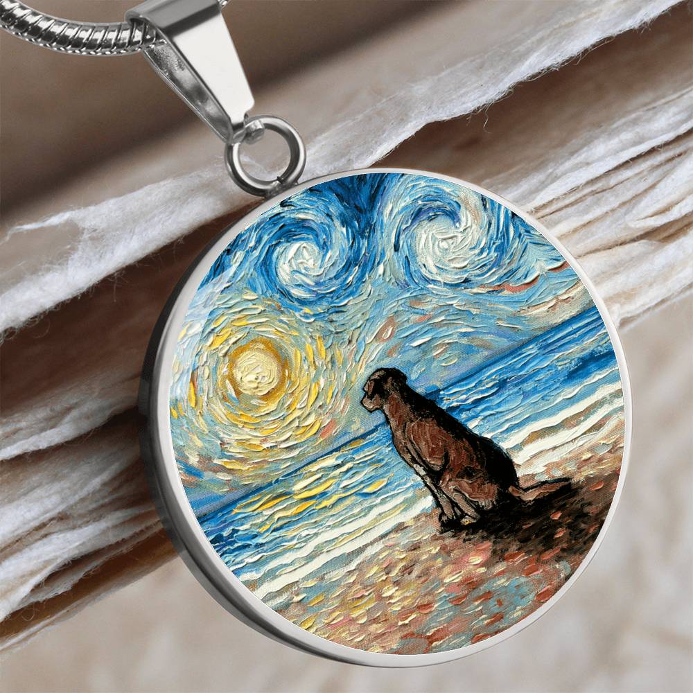 Beach Days - Chocolate Labrador Starry Night Round Necklace