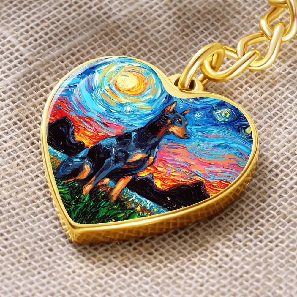 Doberman Pinscher Starry Night Heart Keychain