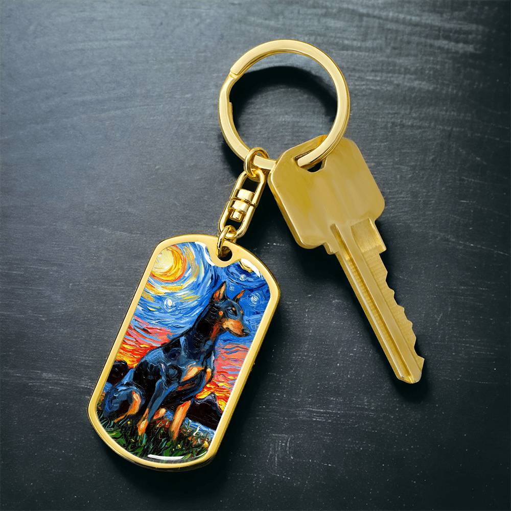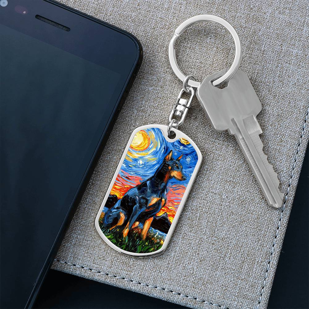 Doberman Starry Night Dog Tag Keychain