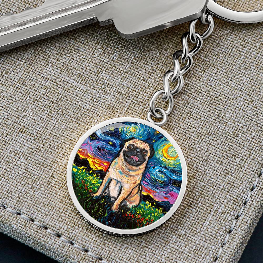 Fawn Pug Starry Night Round Keychain