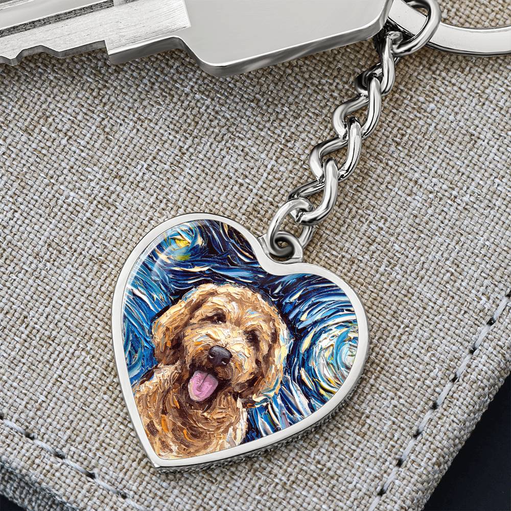 Goldendoodle Portrait Starry Night Heart Keychain