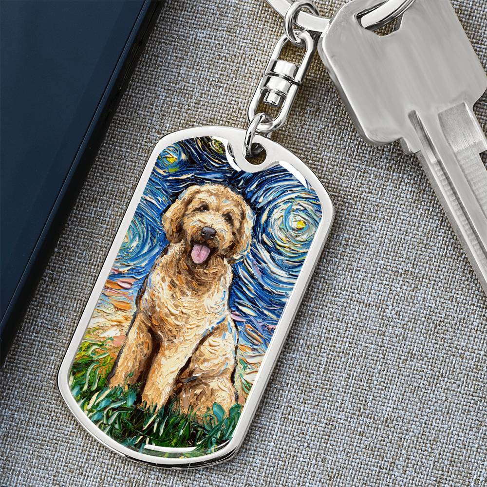 Goldendoodle Starry Night Dog Tag Keychain