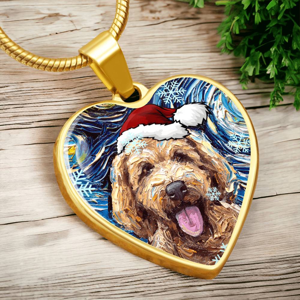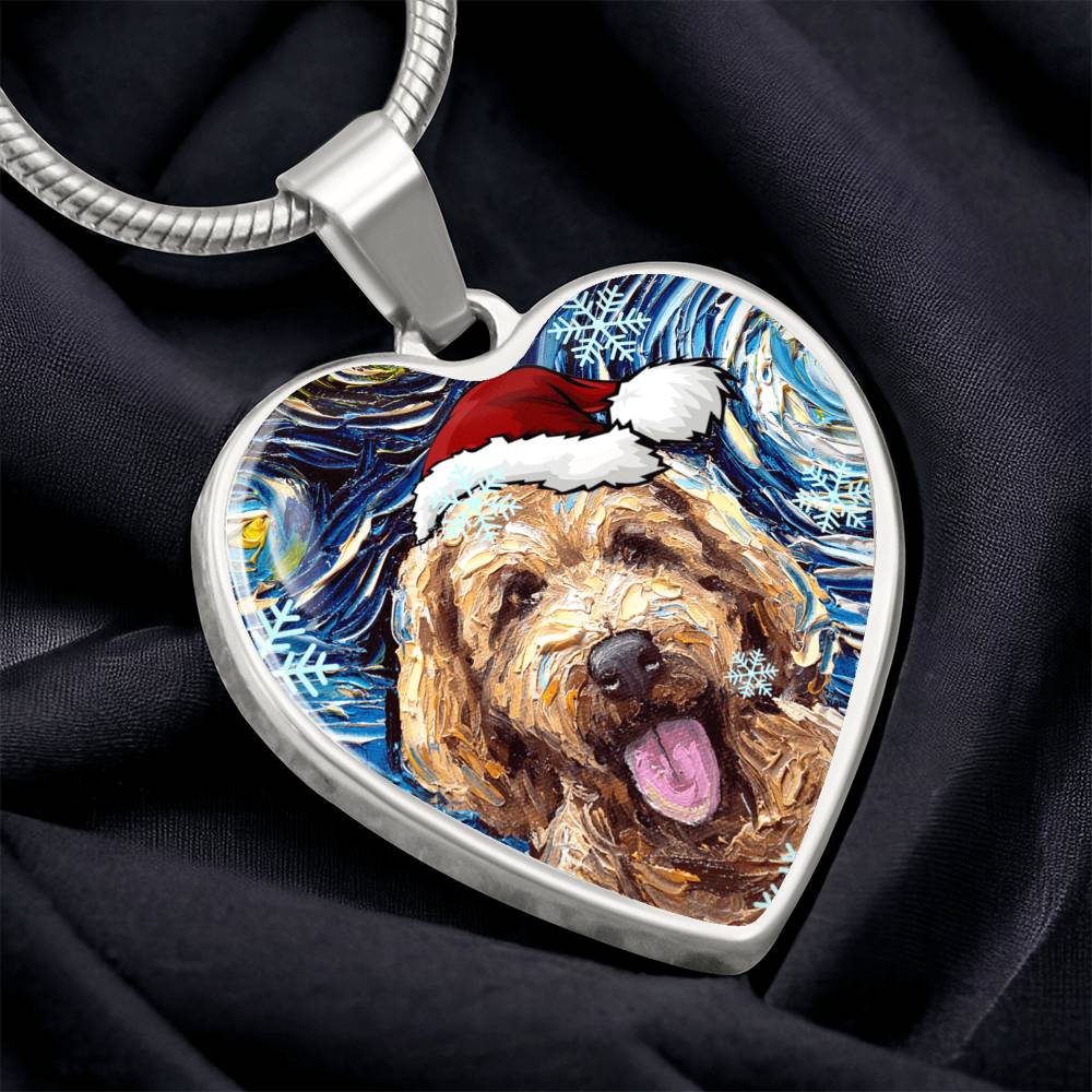 Goldendoodle in Santa Hat Starry Night Heart Necklace