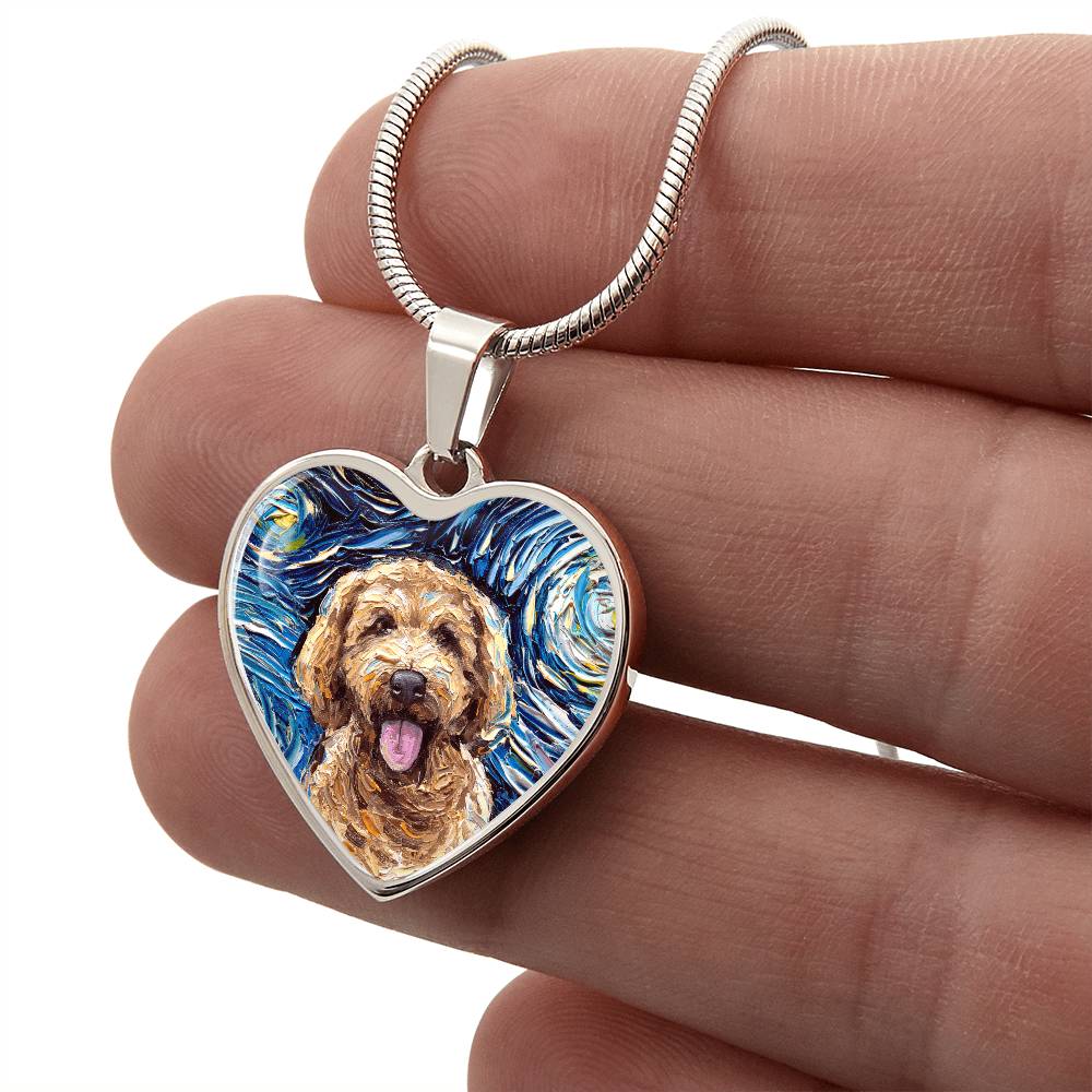 Goldendoodle Portrait Starry Night Heart Necklace
