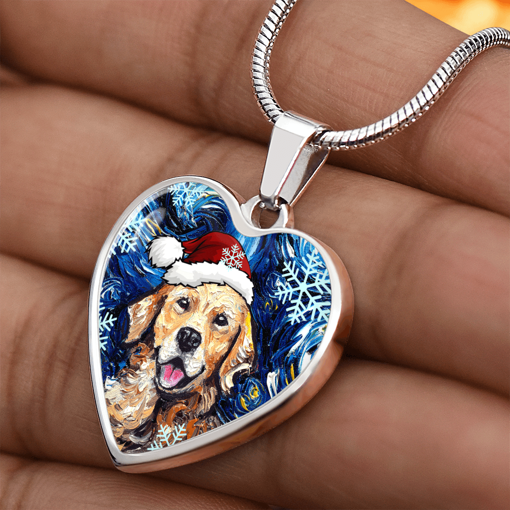 Golden Retriever in Santa Hat Starry Night Heart Necklace