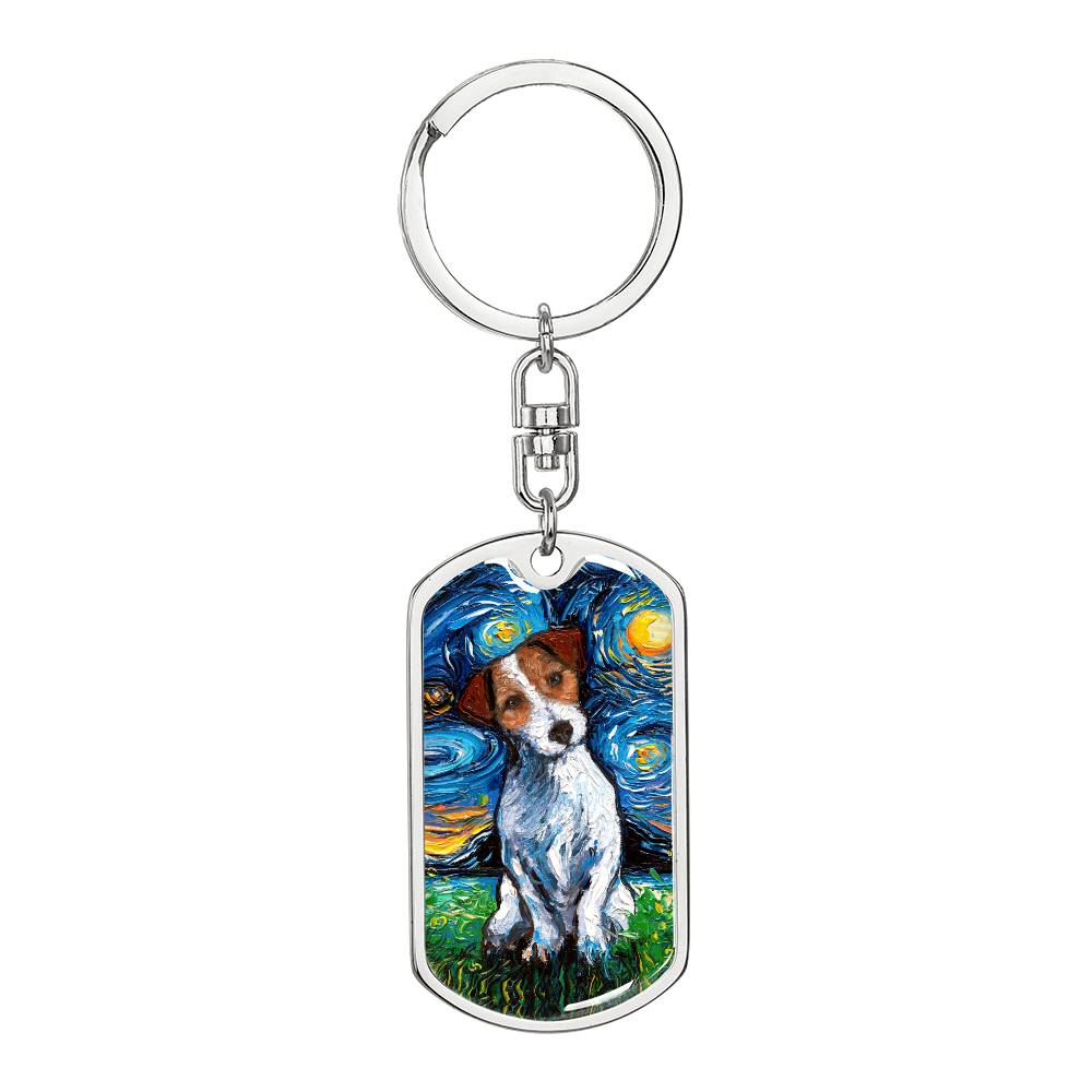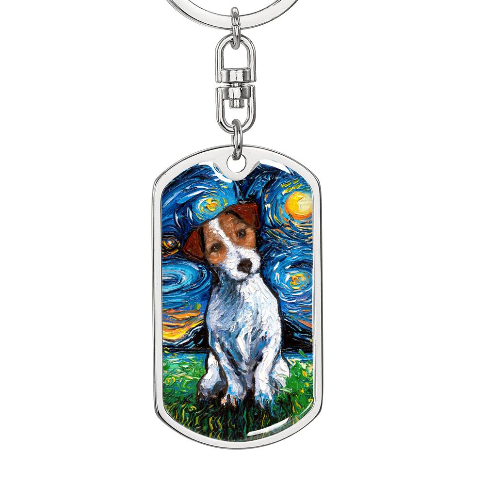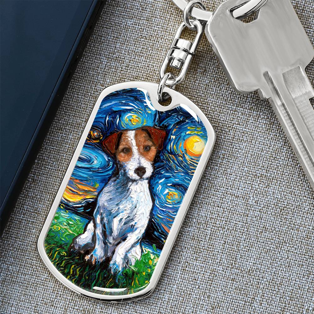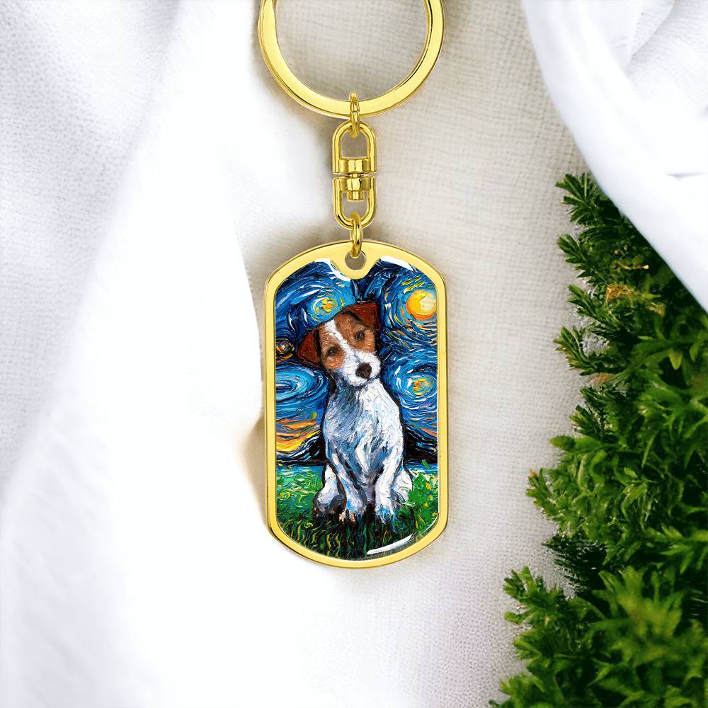 Jack Russell Terrier Starry Night Dog Tag Keychain