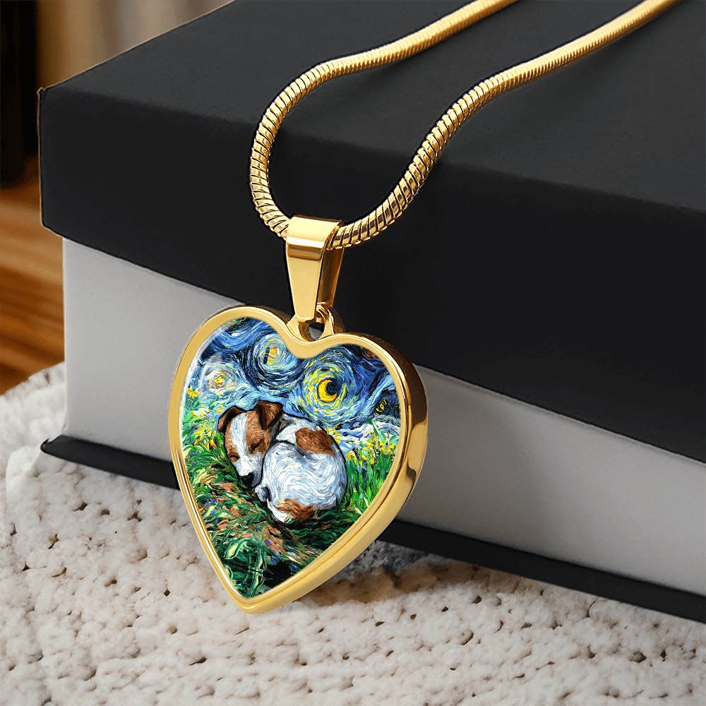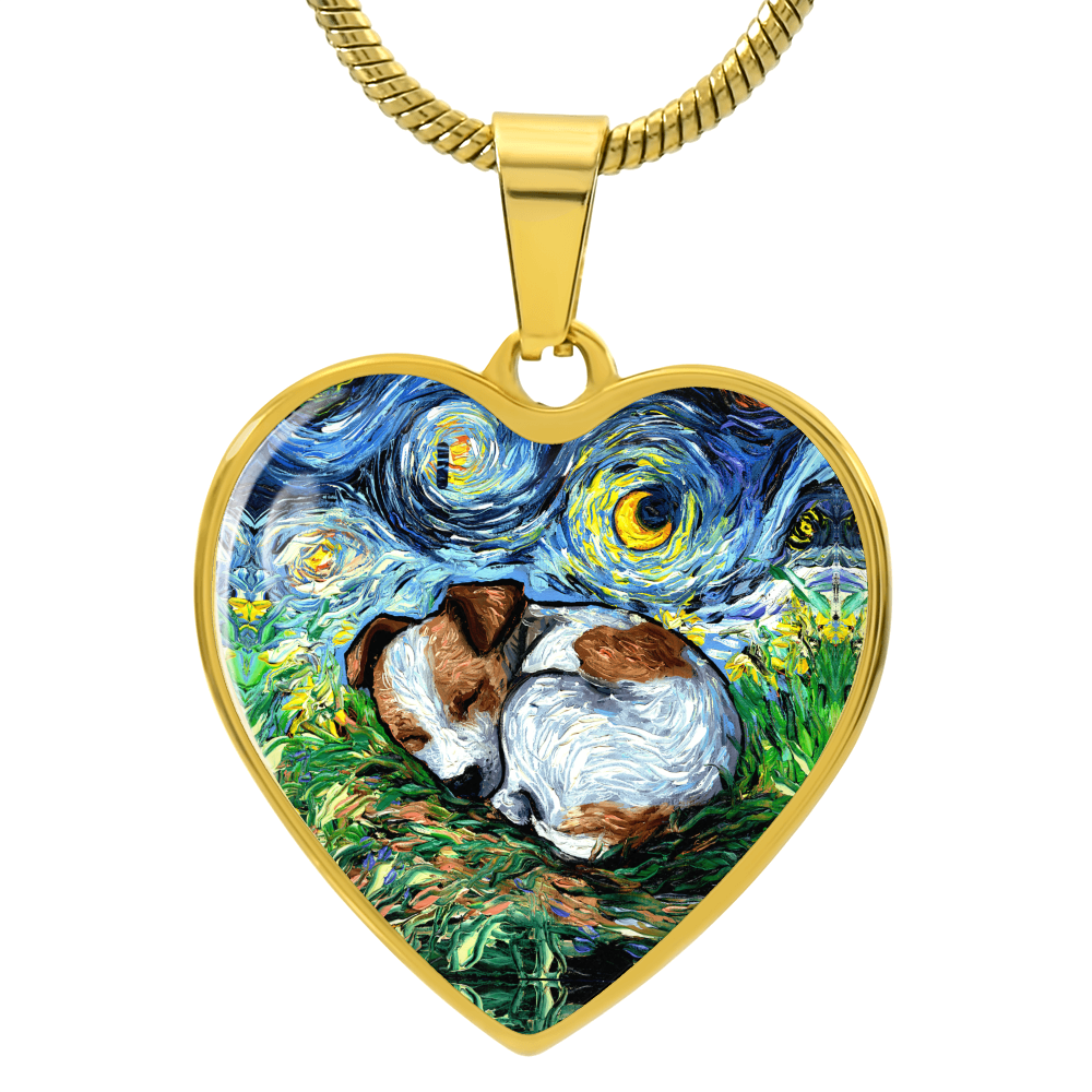 Sleeping Jack Russell Terrier Starry Night Heart Necklace