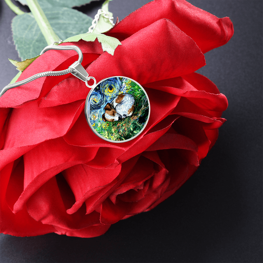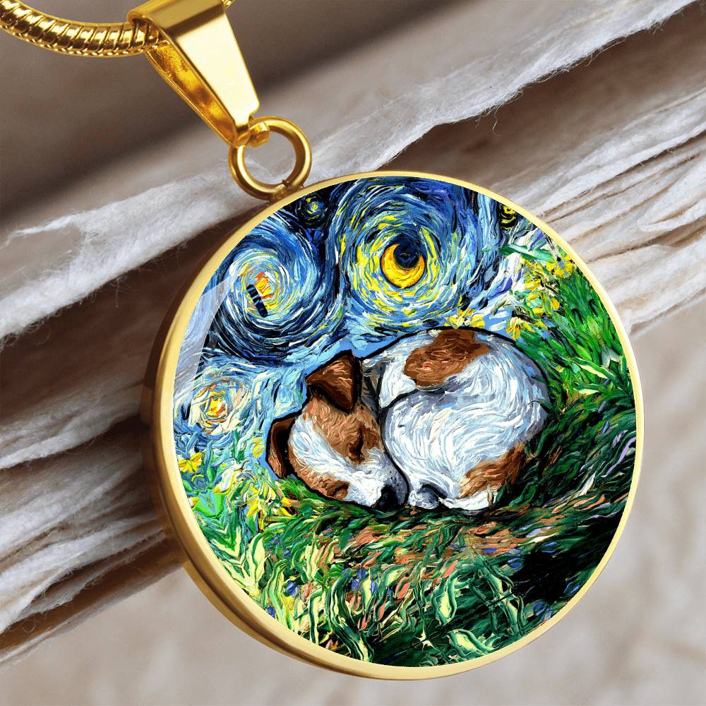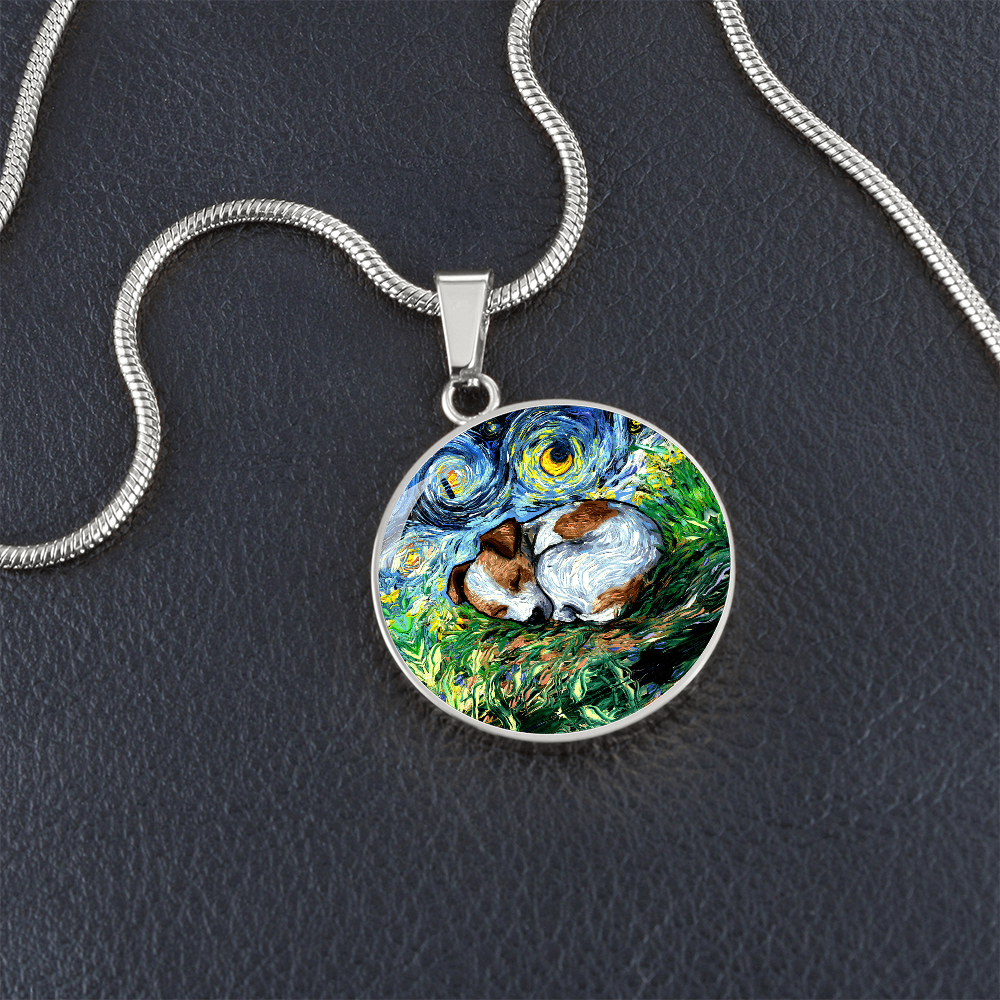 Sleeping Jack Russell Terrier Starry Night Round Necklace
