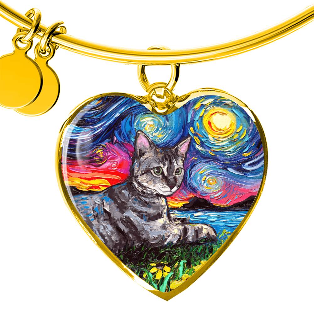 Laying Tabby Starry Night Heart Bangle