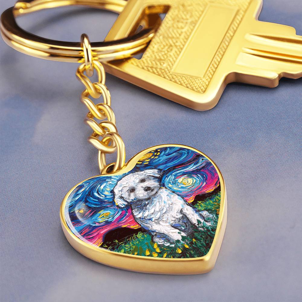 Maltese Starry Night Heart Keychain