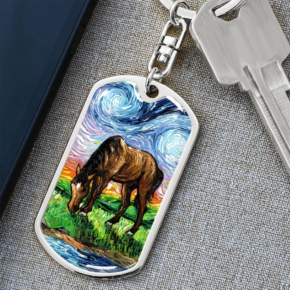 Horse in Meadow Starry Night Dog Tag Keychain