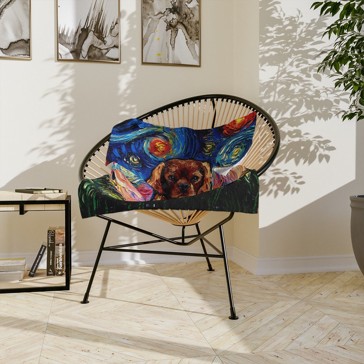 Minky Blanket Ruby Cavalier King Charles Spaniel Starry Night Art By Aja Home Decor Choose from 3 sizes Free US Shipping