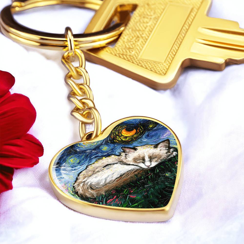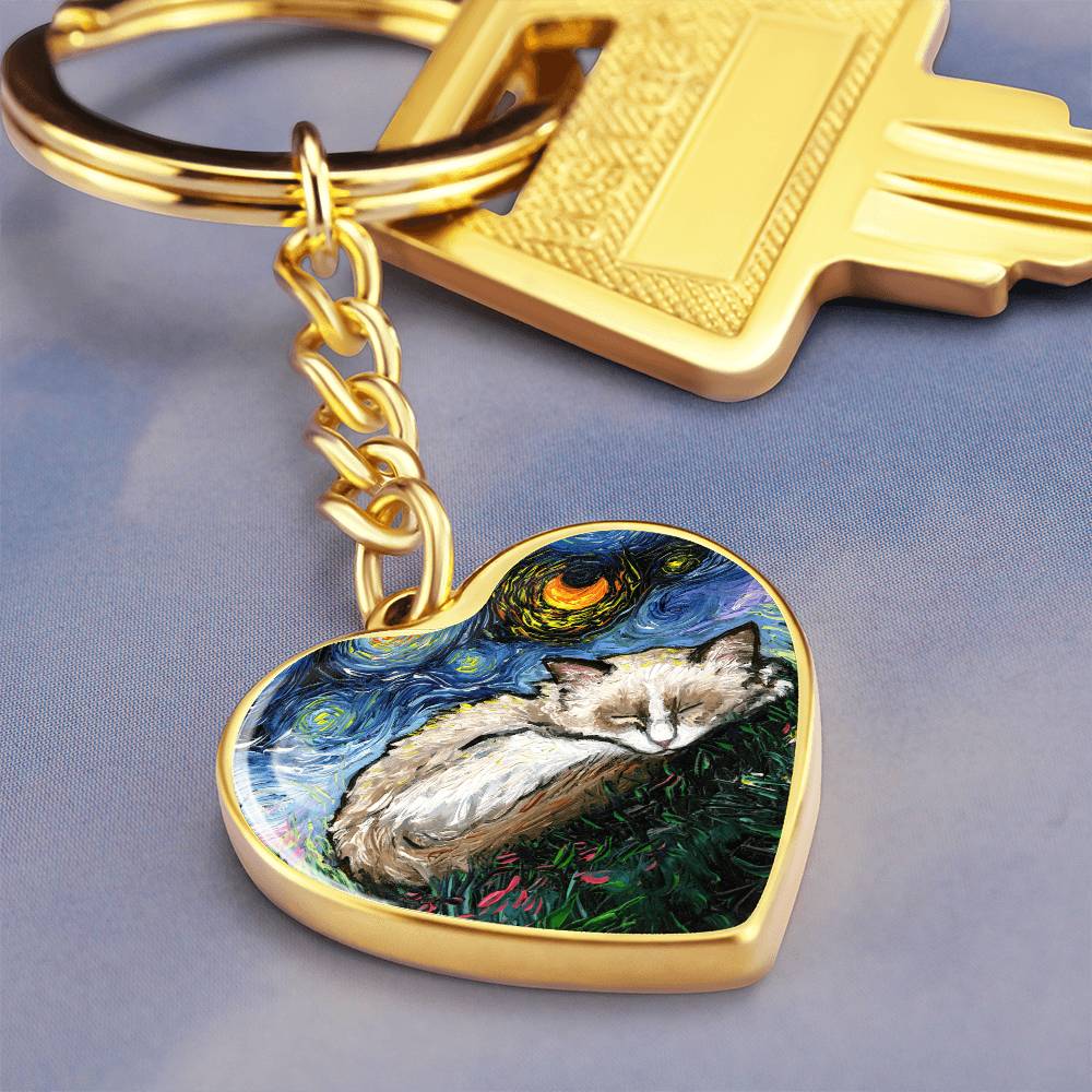 Ragdoll Starry Night Heart Keychain