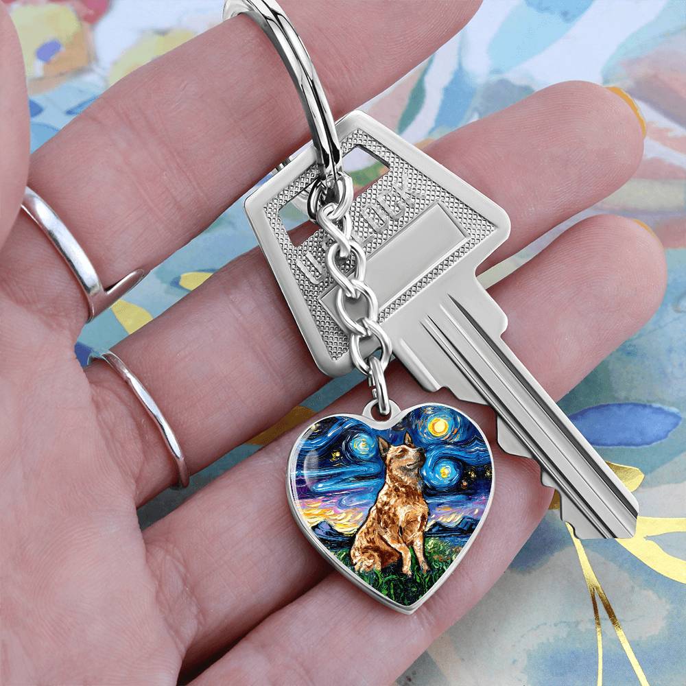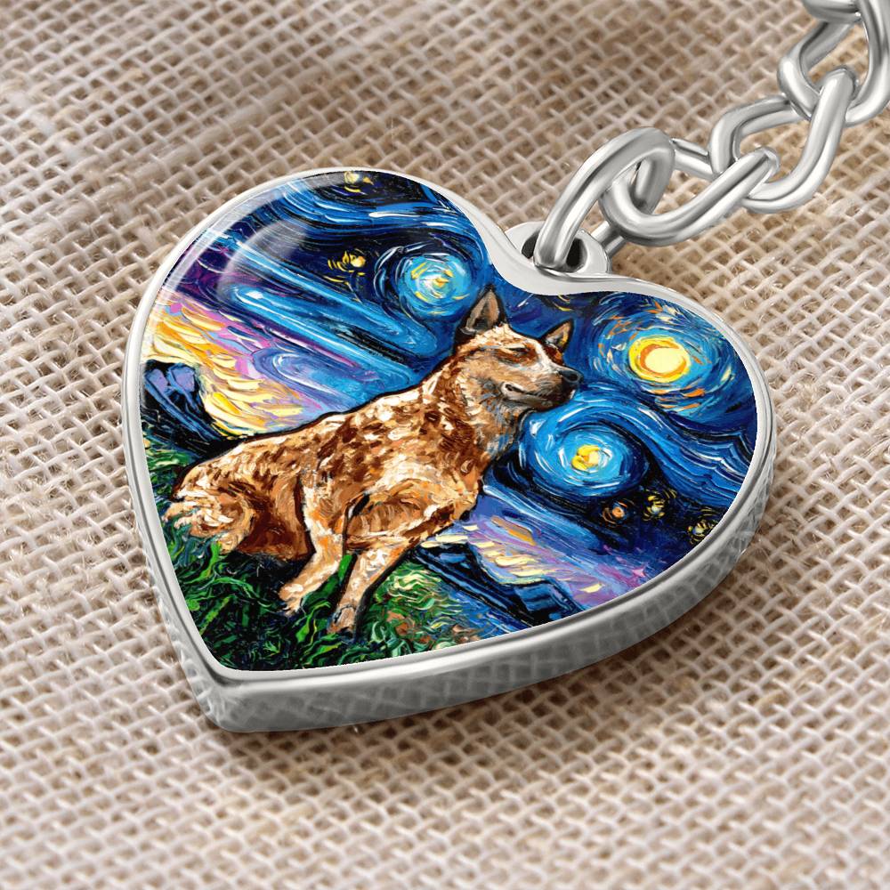 Red Heeler Starry Night Heart Keychain