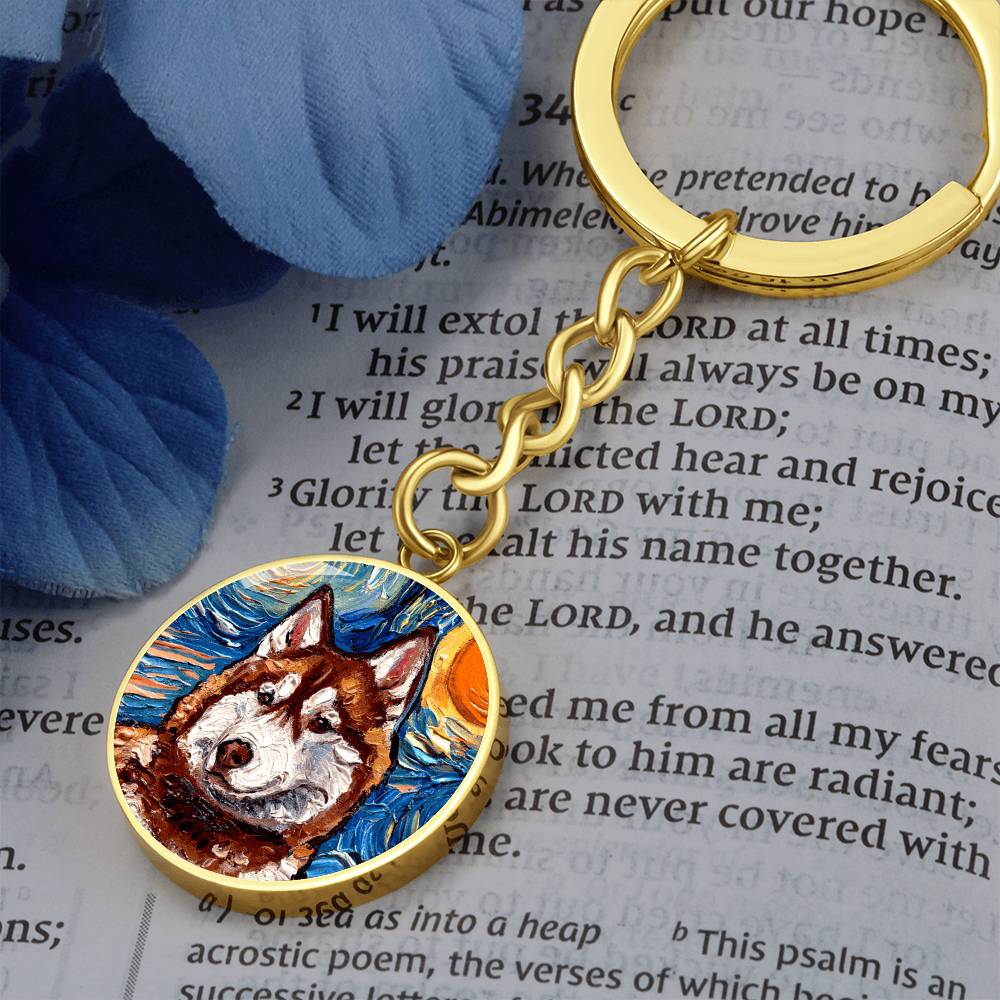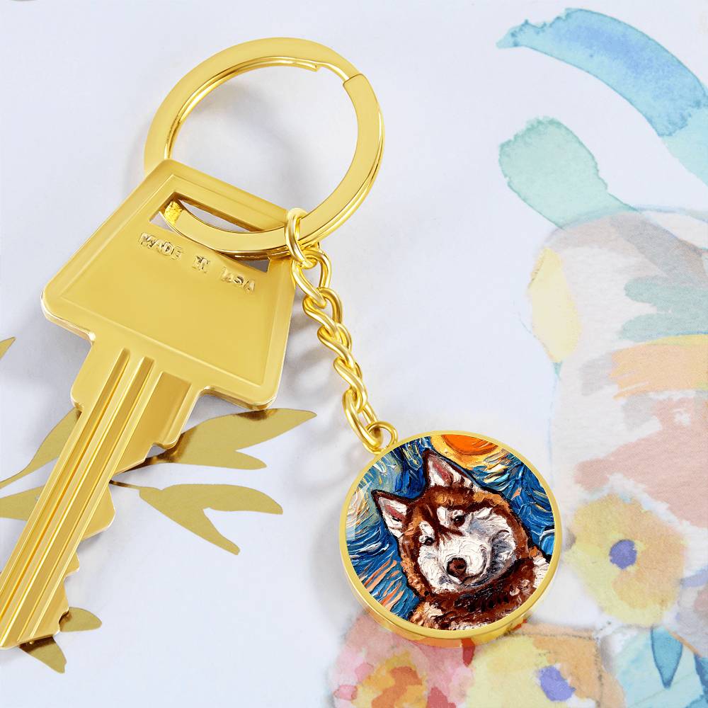 Red Husky Portrait Round Keychain