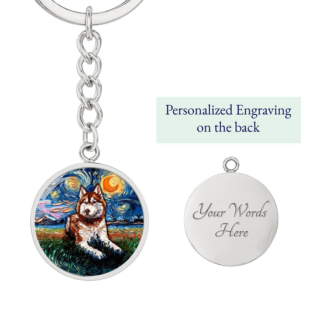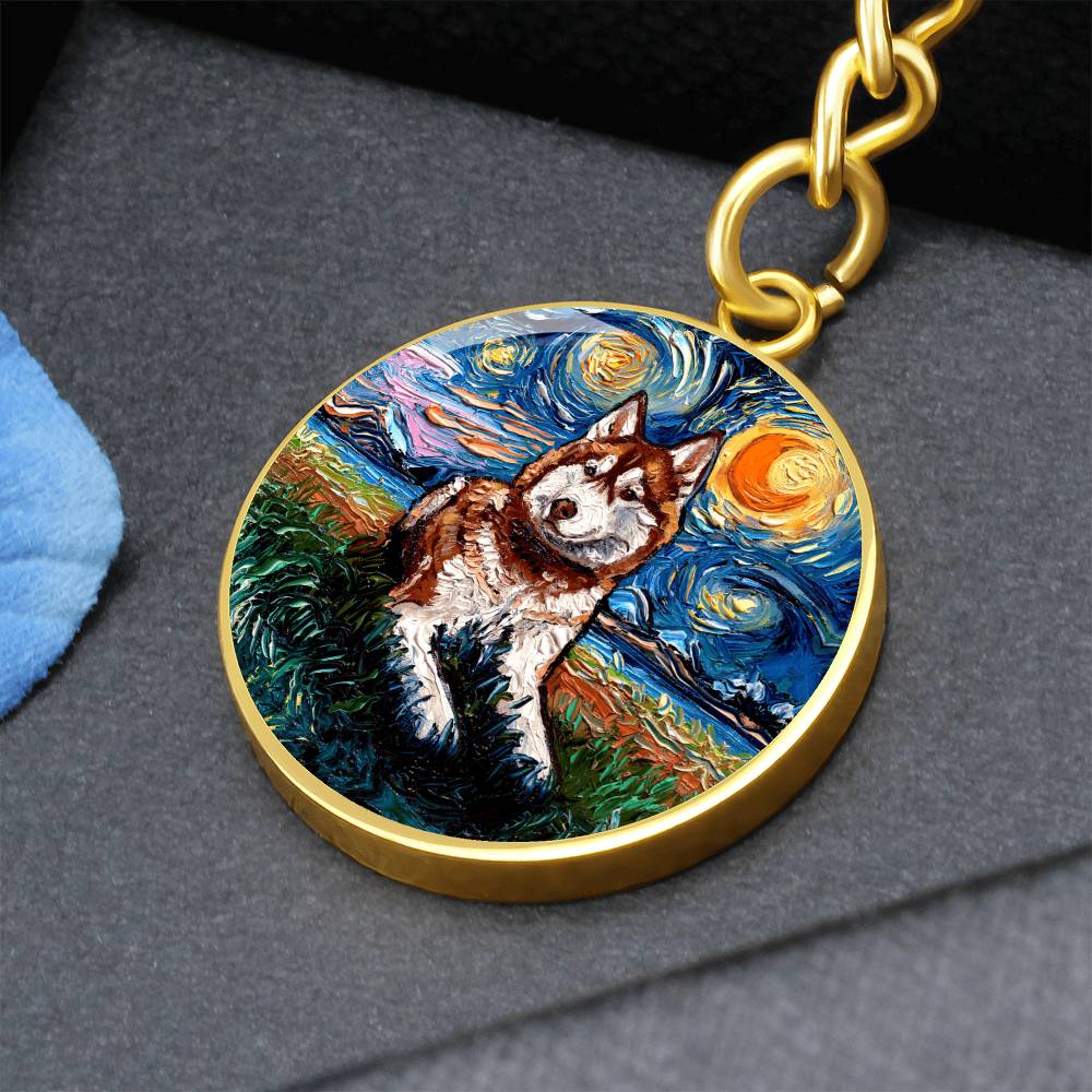 Red Husky Starry Night Round Keychain