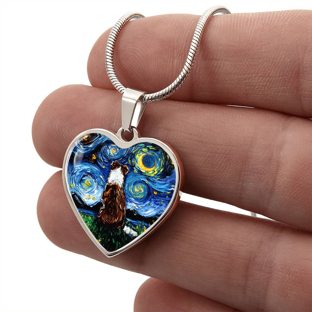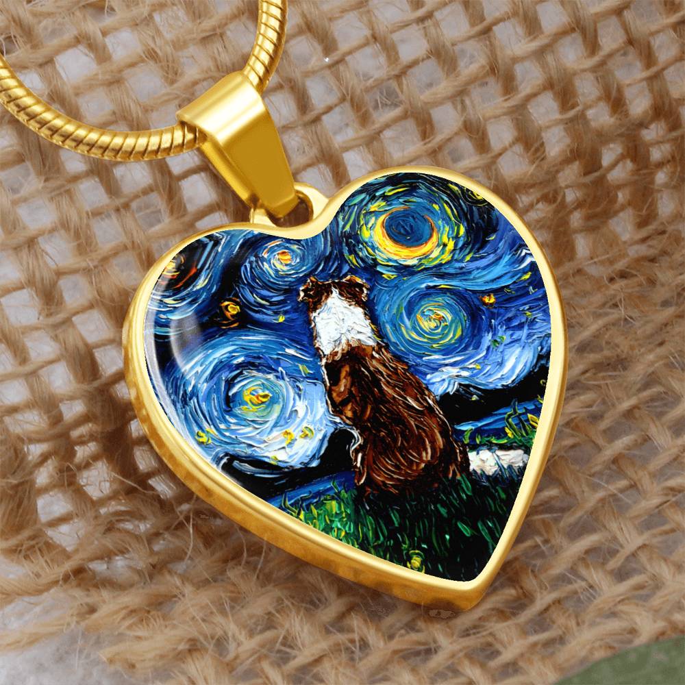 Red Border Collie Starry Night Heart Necklace