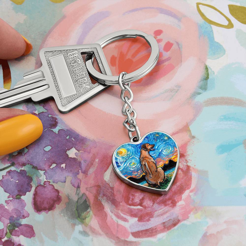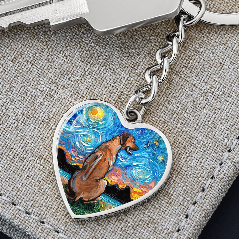 Rhodesian Ridgeback Starry Night Heart Keychain