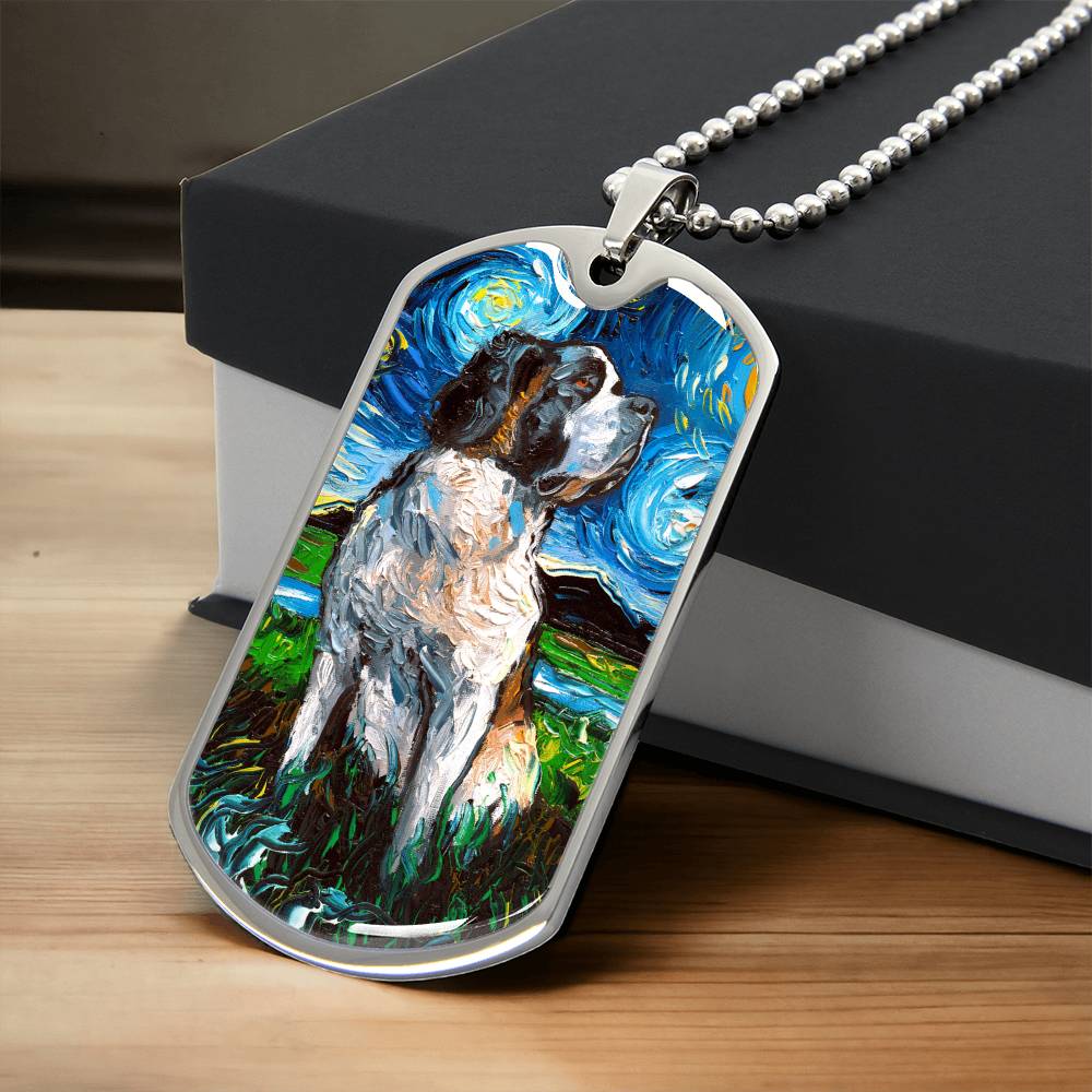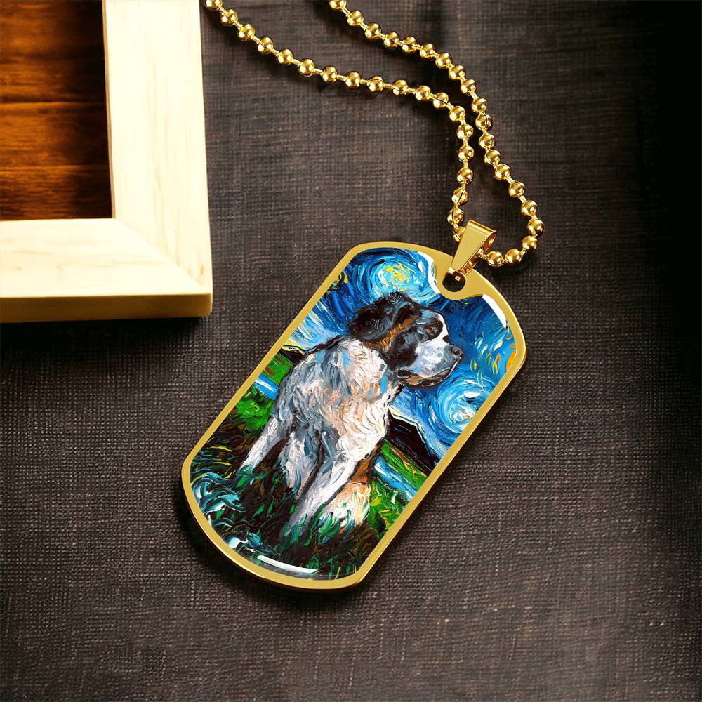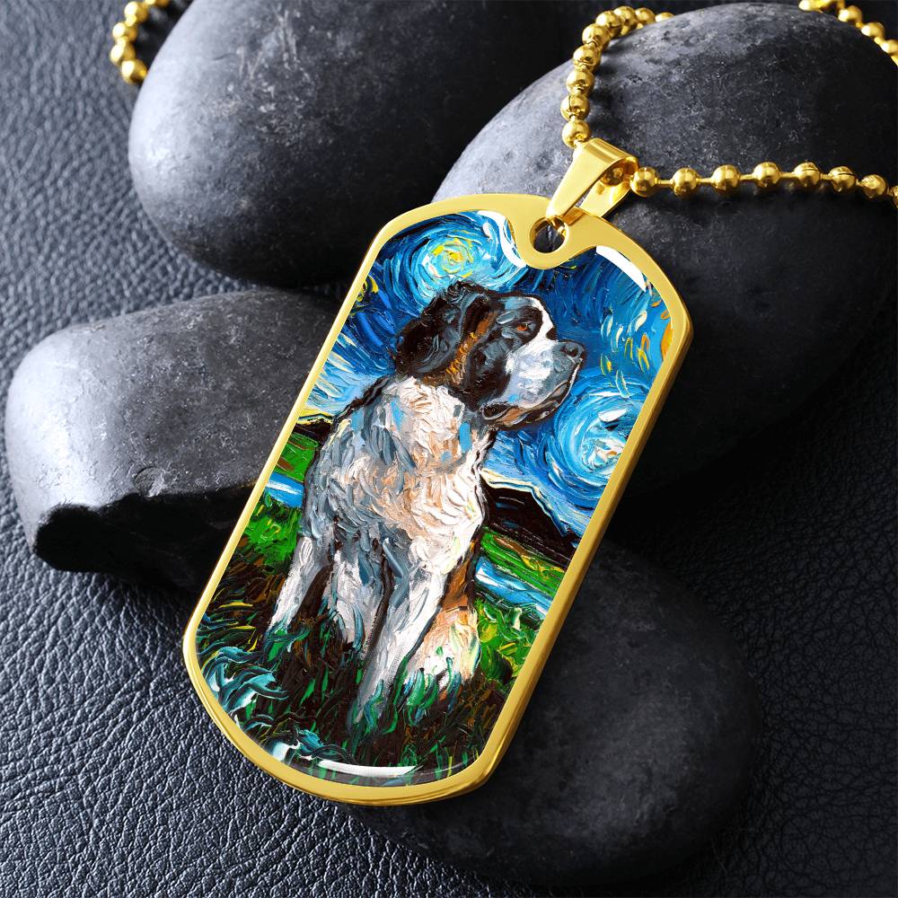 Saint Bernard Starry Night Dog Tag Necklace