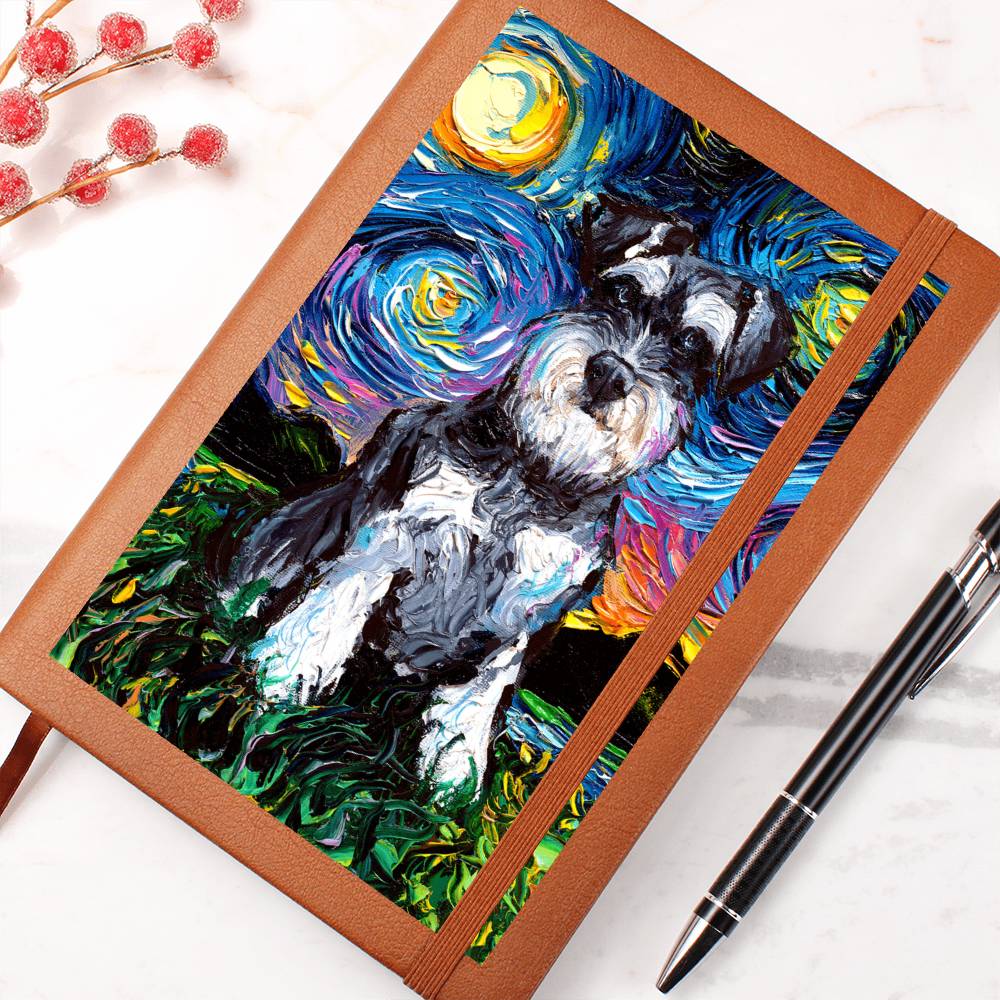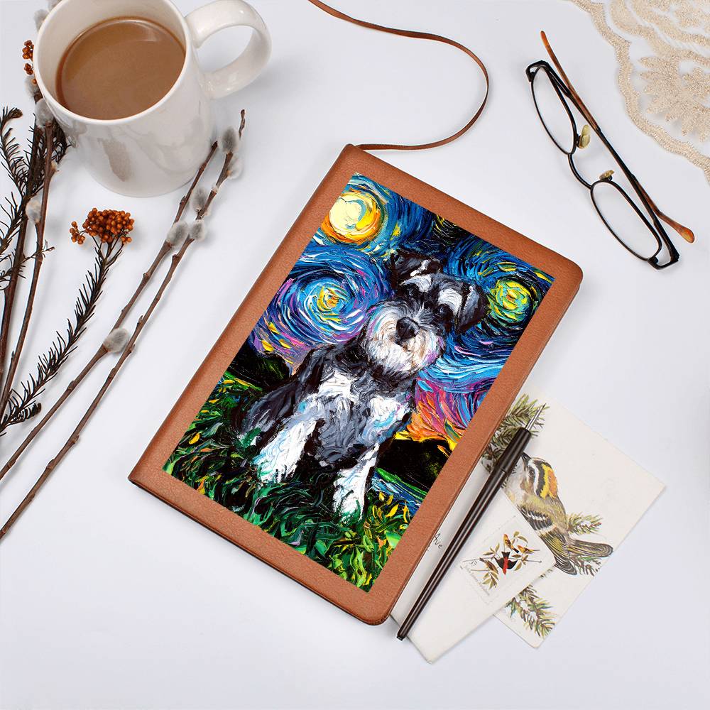 Schnauzer Starry Night Leather Journal