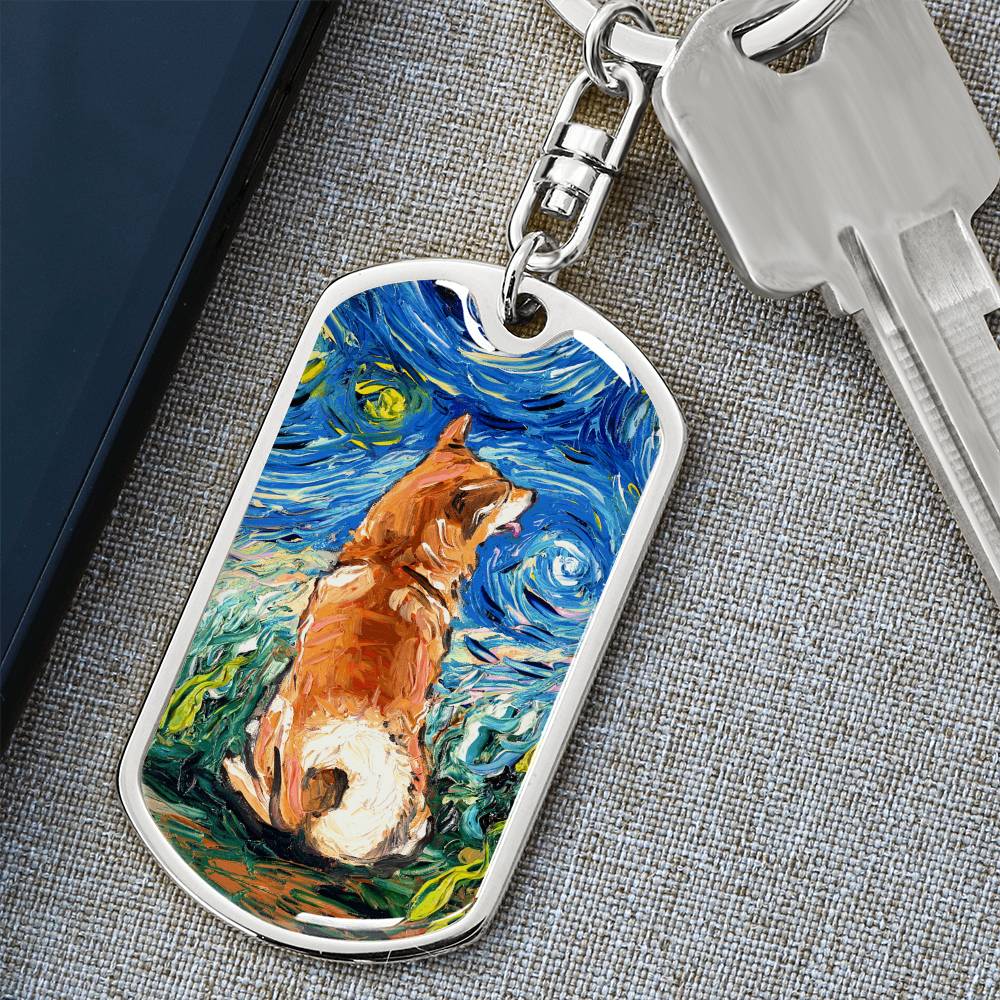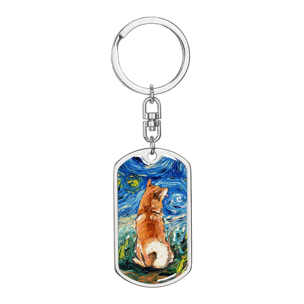 Shiba Inu Starry Night Dog Tag Keychain