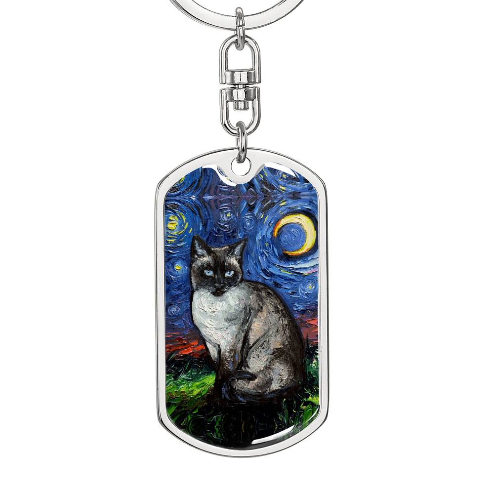Siamese Cat Starry Night Dog Tag Keychain