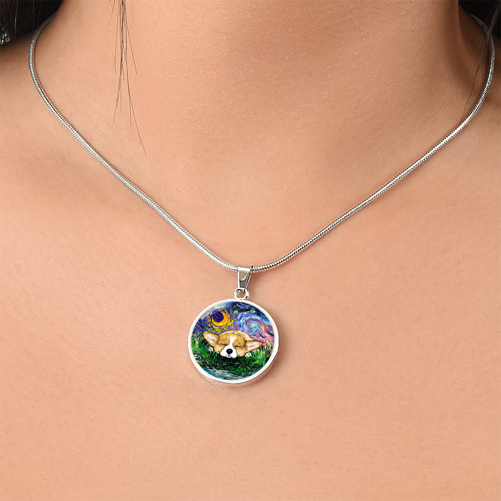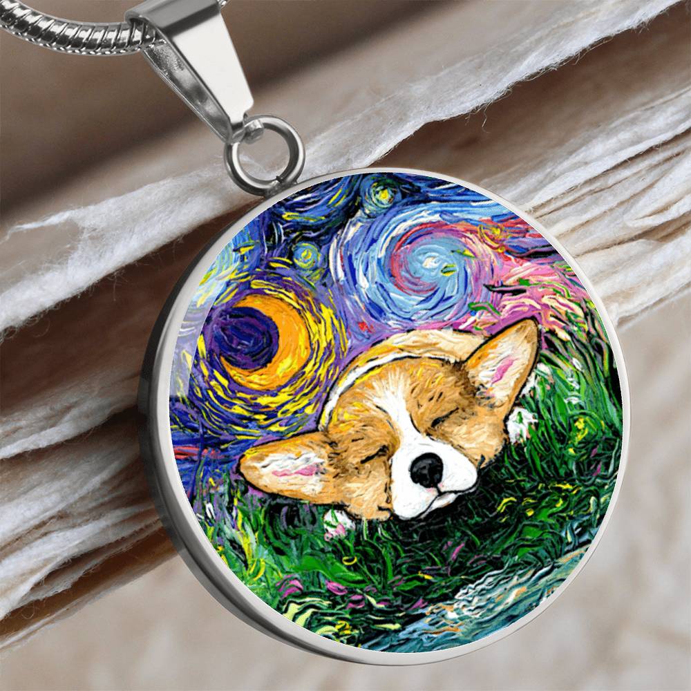 Sleeping Corgi Starry Night Round Necklace