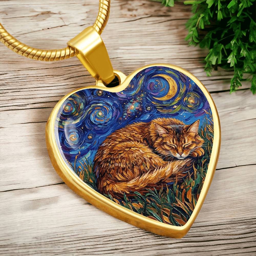 Sleepy Somali Cat Night Heart Necklace