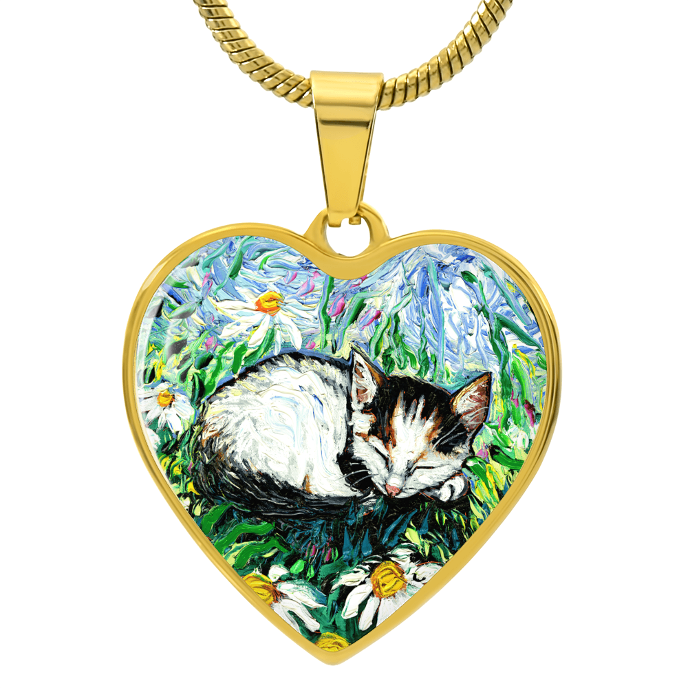 Kitten Sweet Dreams Starry Night Heart Necklace