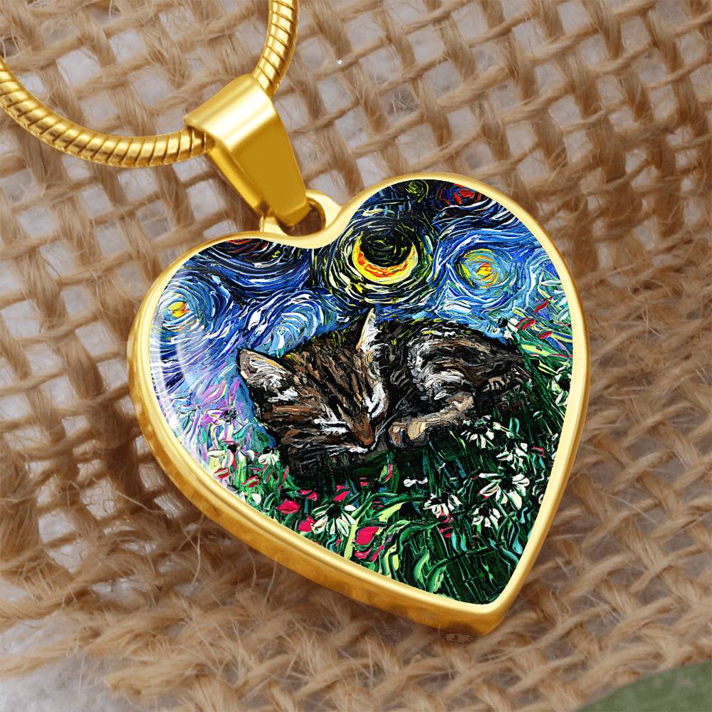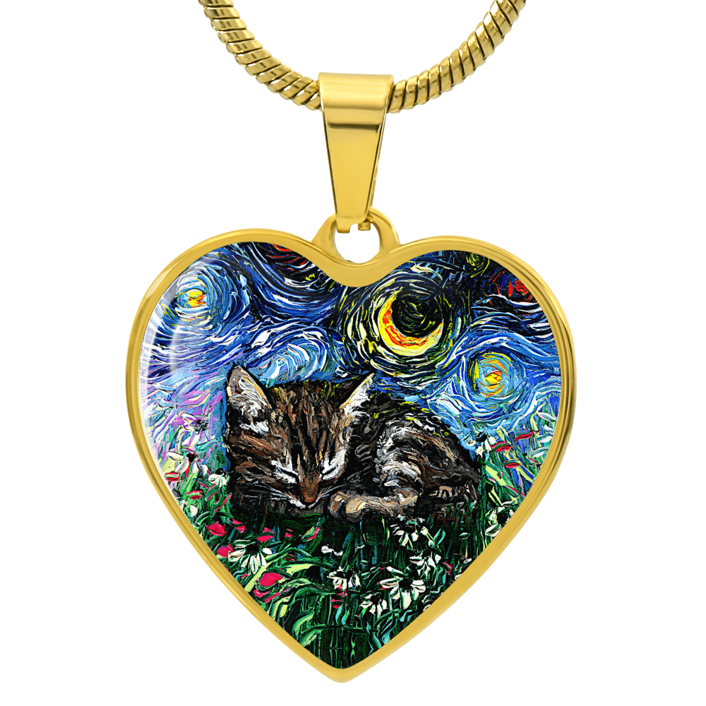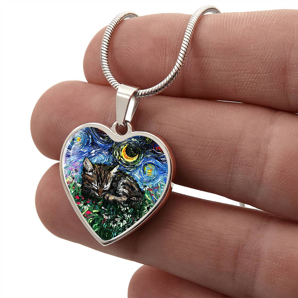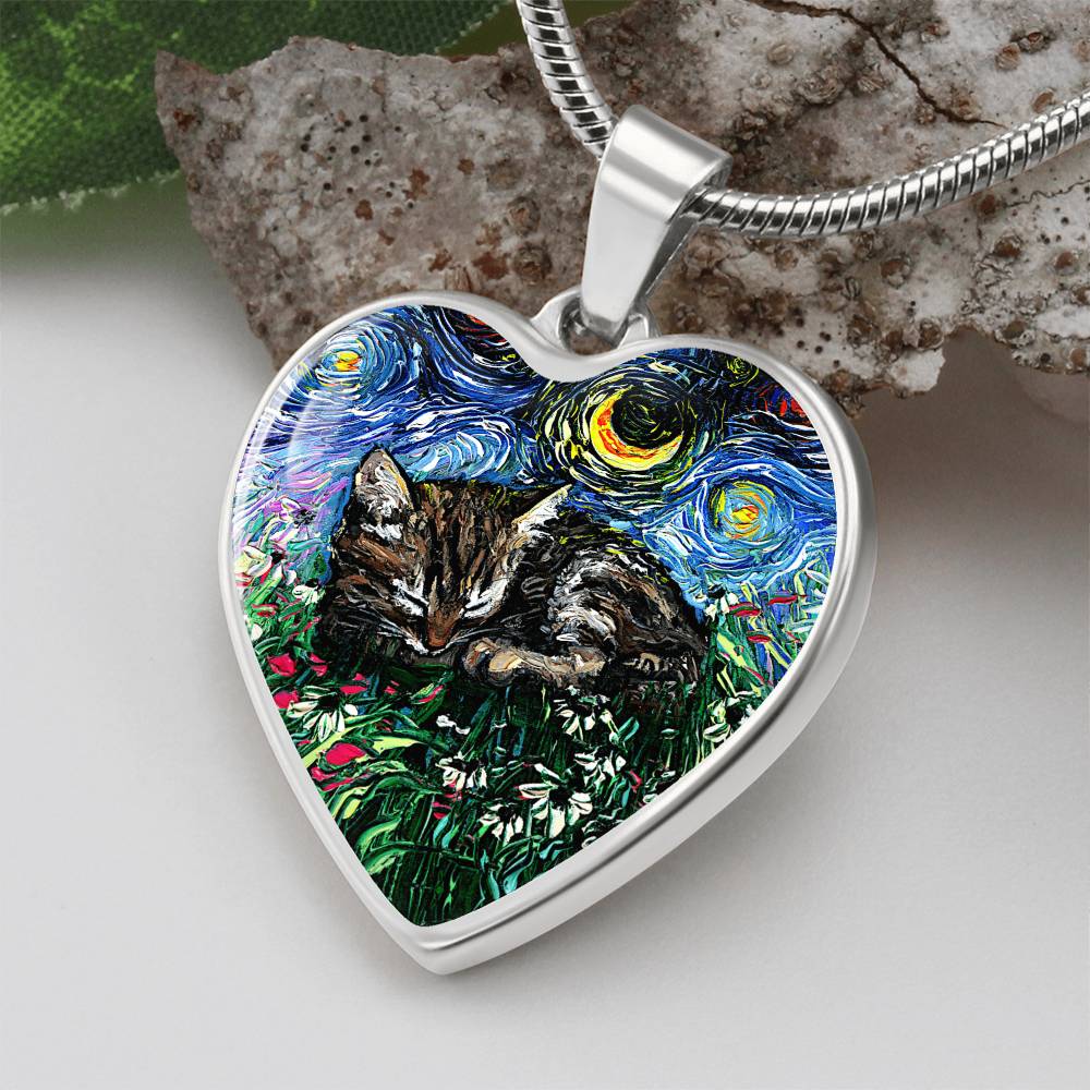 Tabby Kitten Starry Night Heart Necklace